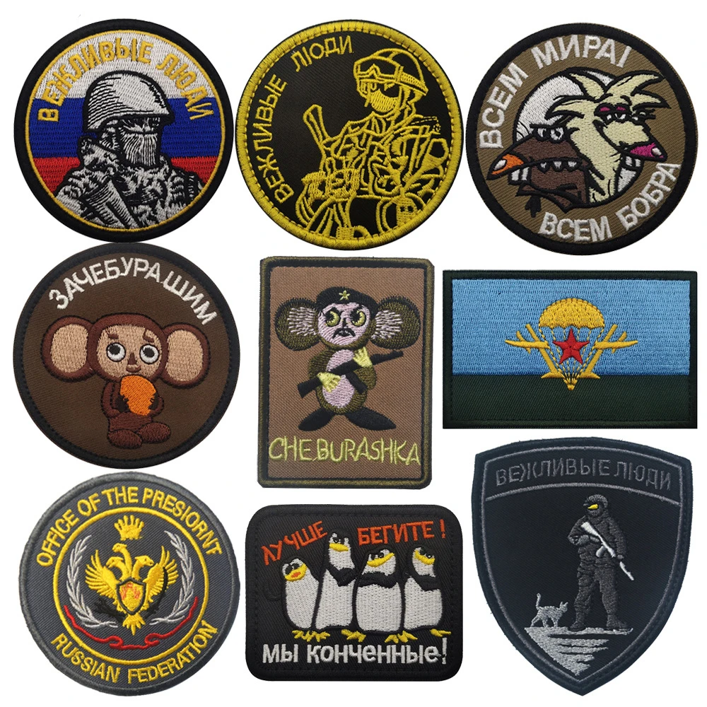 Nombre del producto: Emblema de parche bordado de soldados rusos, insignia para brazalete, adornos de costura, parches bordados tácticos militares