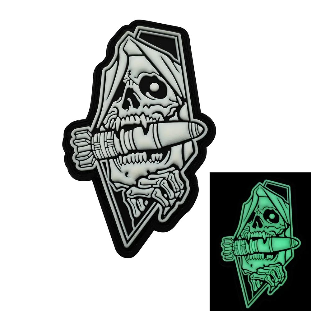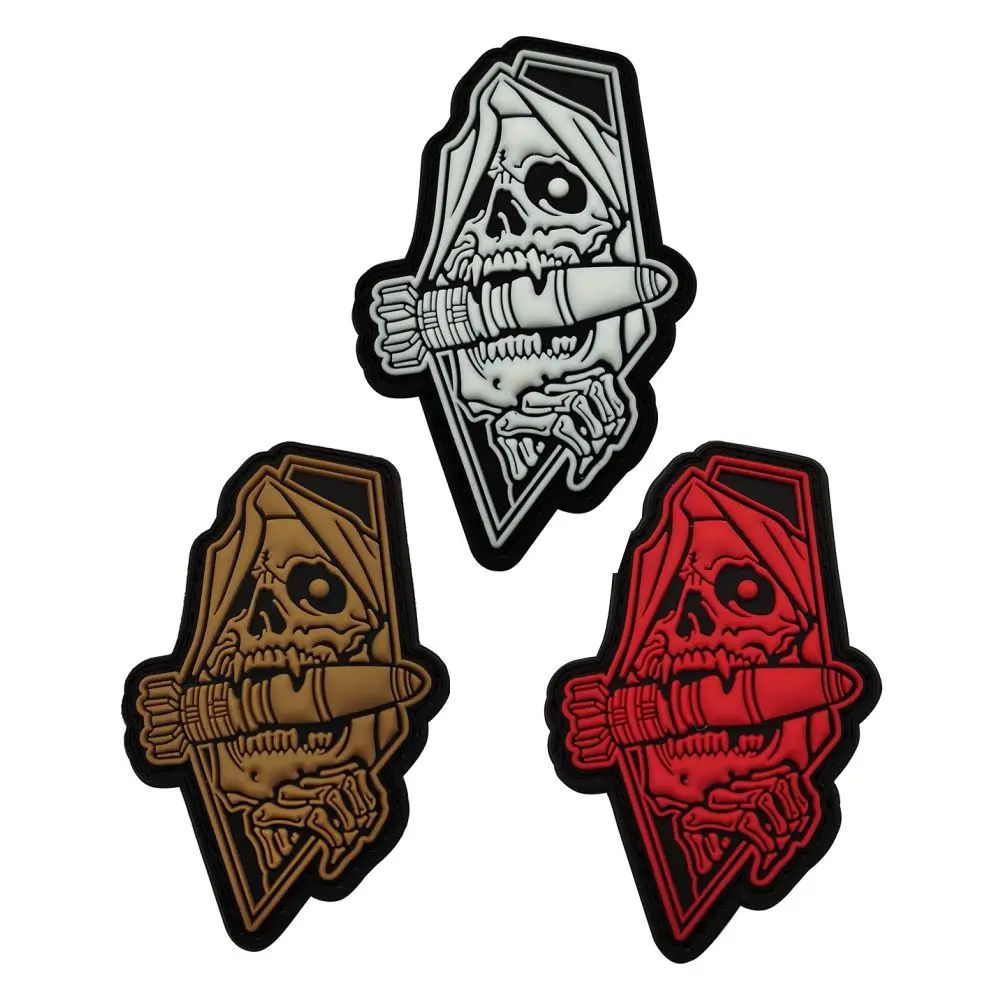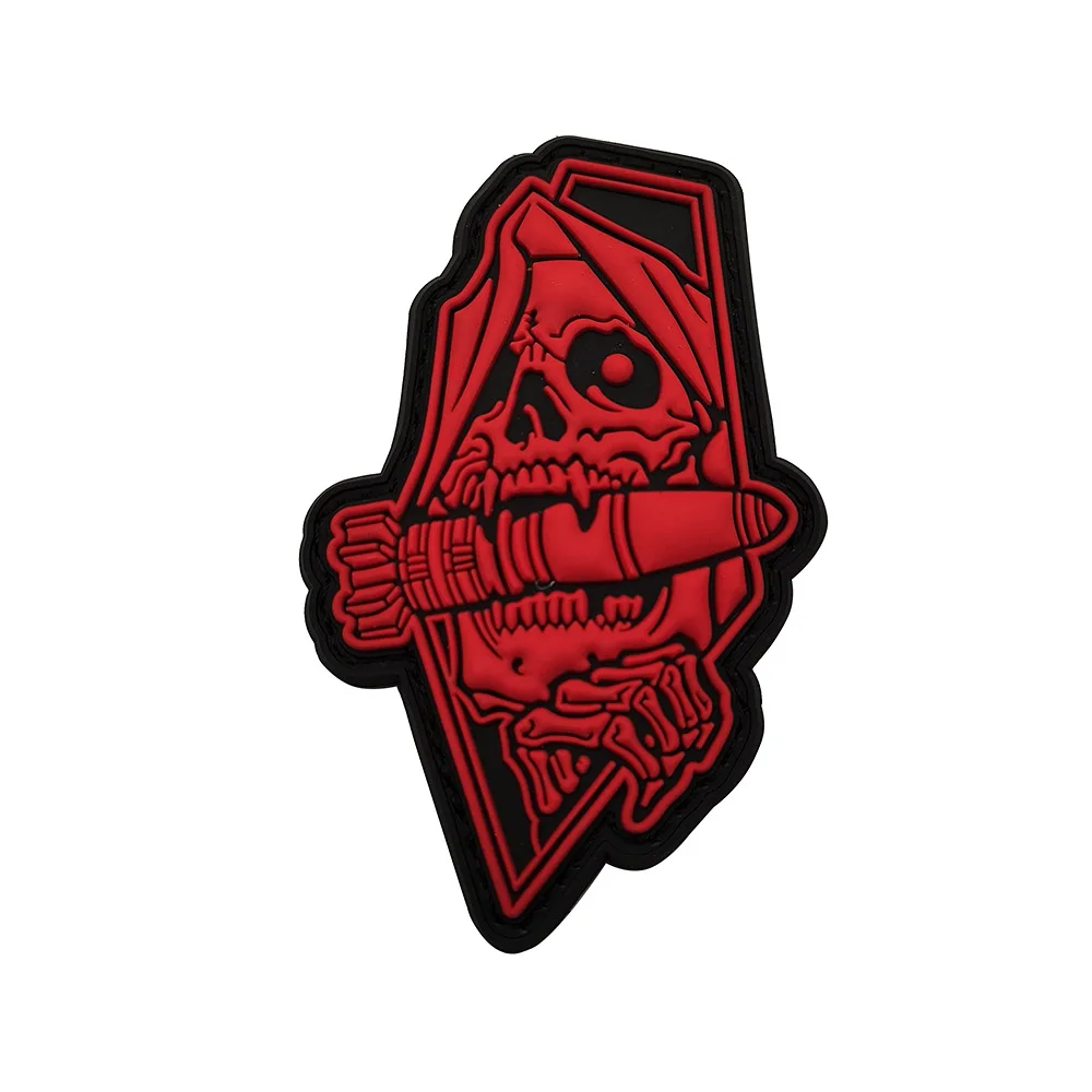Nombre del producto:Parche militar de la muerte de PVC, insignia de brazalete, pegatina, adorno de apliques decorativos, parches de goma tácticos de moral