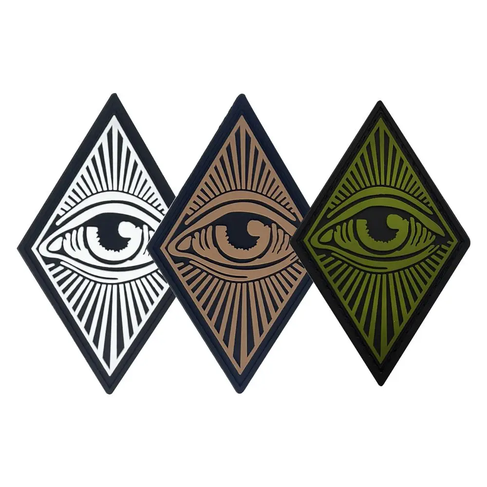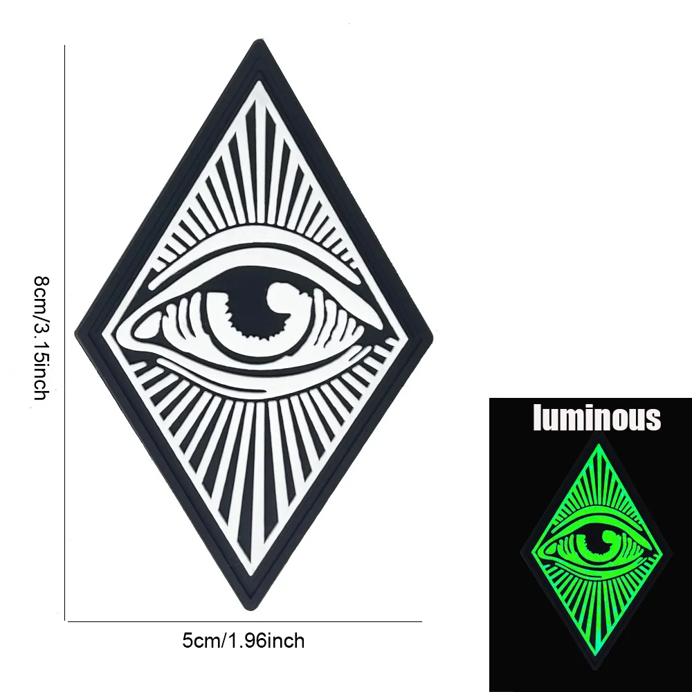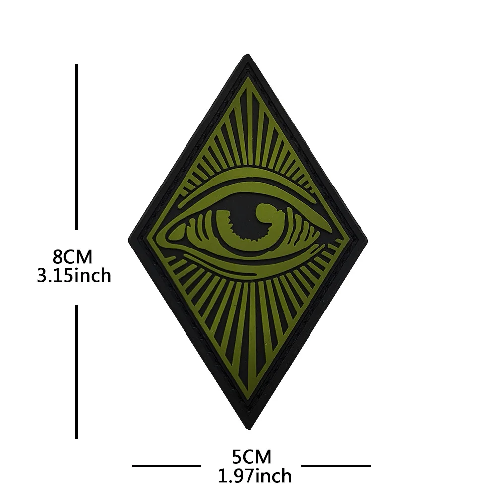 Nombre del producto:Parche de PVC con forma de ojo transparente de diamante, emblema para brazalete, insignia decorativa militar, apliques de costura, parches tácticos de adorno