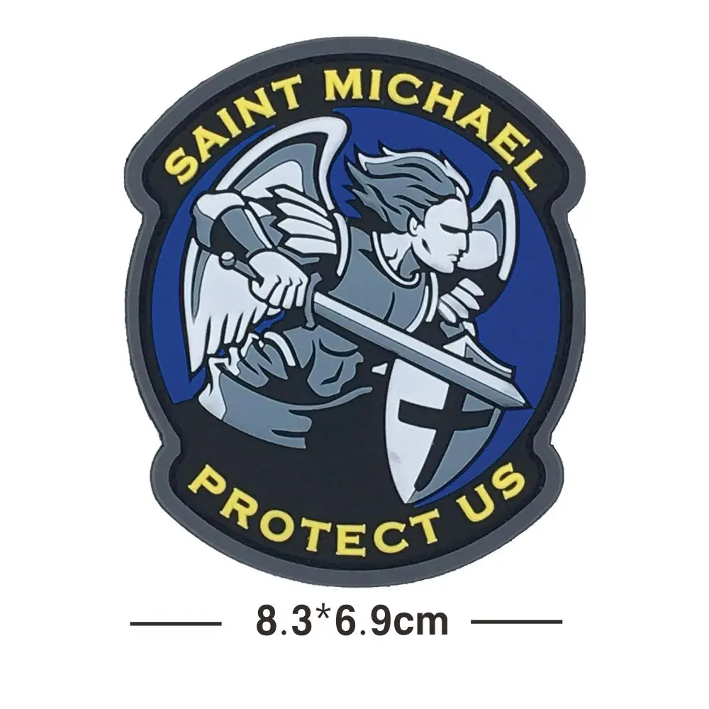 Nombre del producto:Parche de PVC de San Miguel, insignia para brazalete, pegatina, aplique, adorno decorativo, protección táctica de moral, parches de goma de EE. UU.