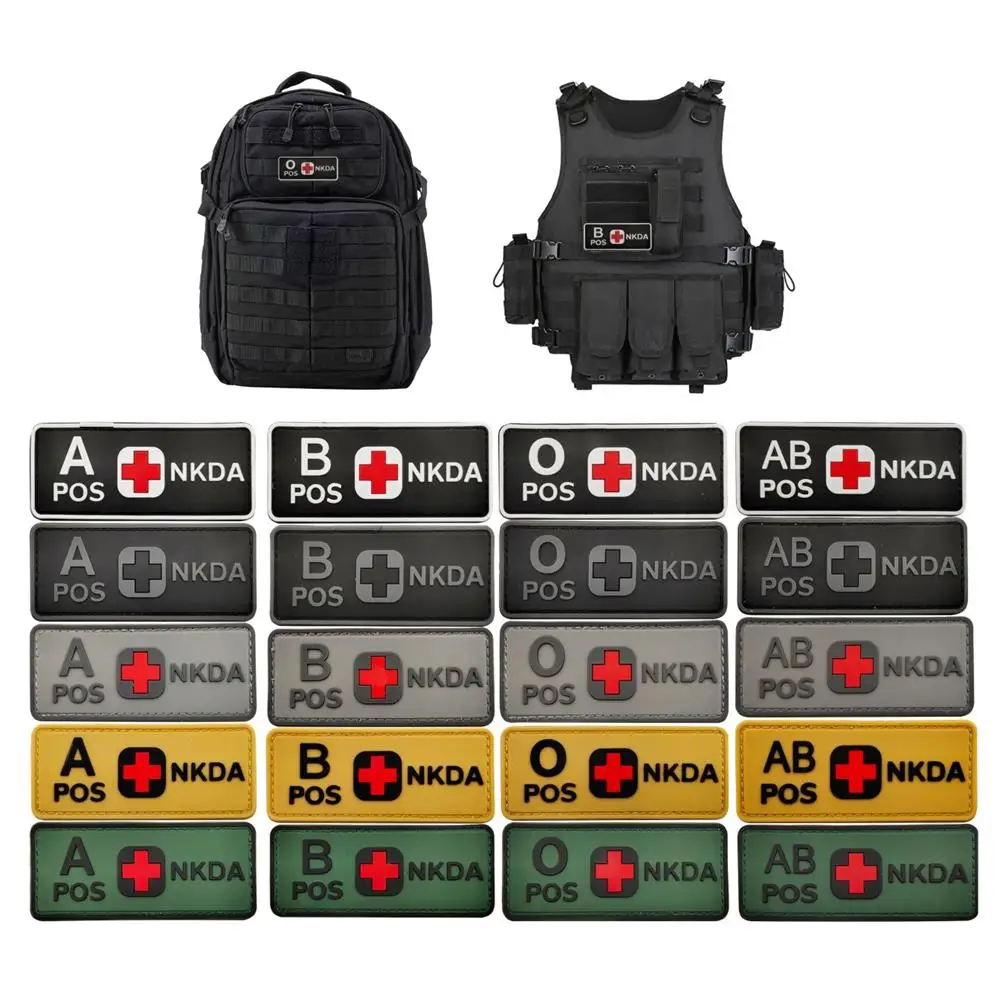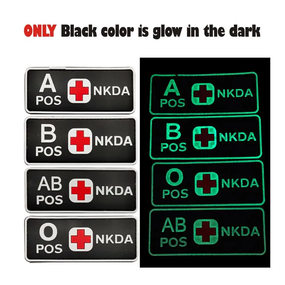 Nombre del producto: Brazalete militar con parche de PVC tipo sangre para insignia, tapa, mochila, accesorio que brilla en la oscuridad, parches decorativos tácticos NKDA