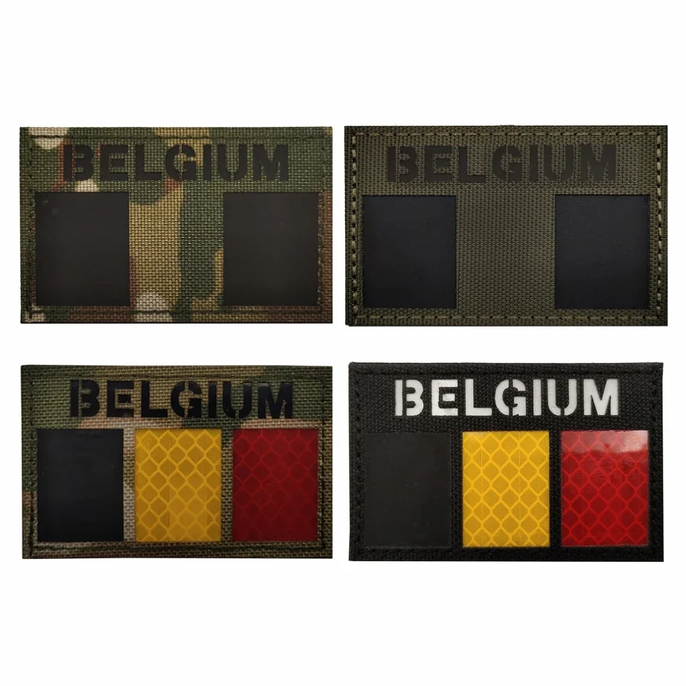 Nombre del producto: Parche reflectante con bandera del país belga, insignia para brazalete que brilla en la oscuridad, apliques de adorno, parches tácticos IR en blanco y negro