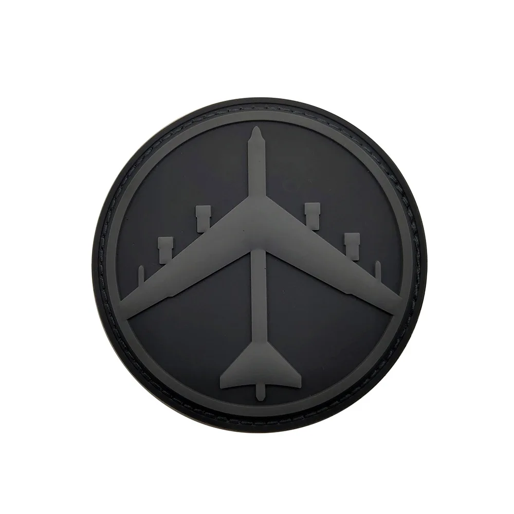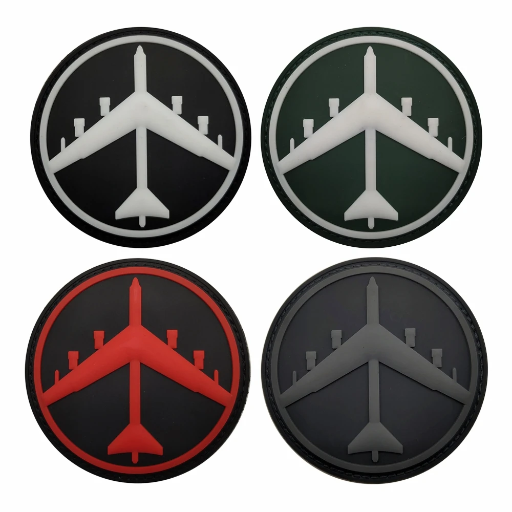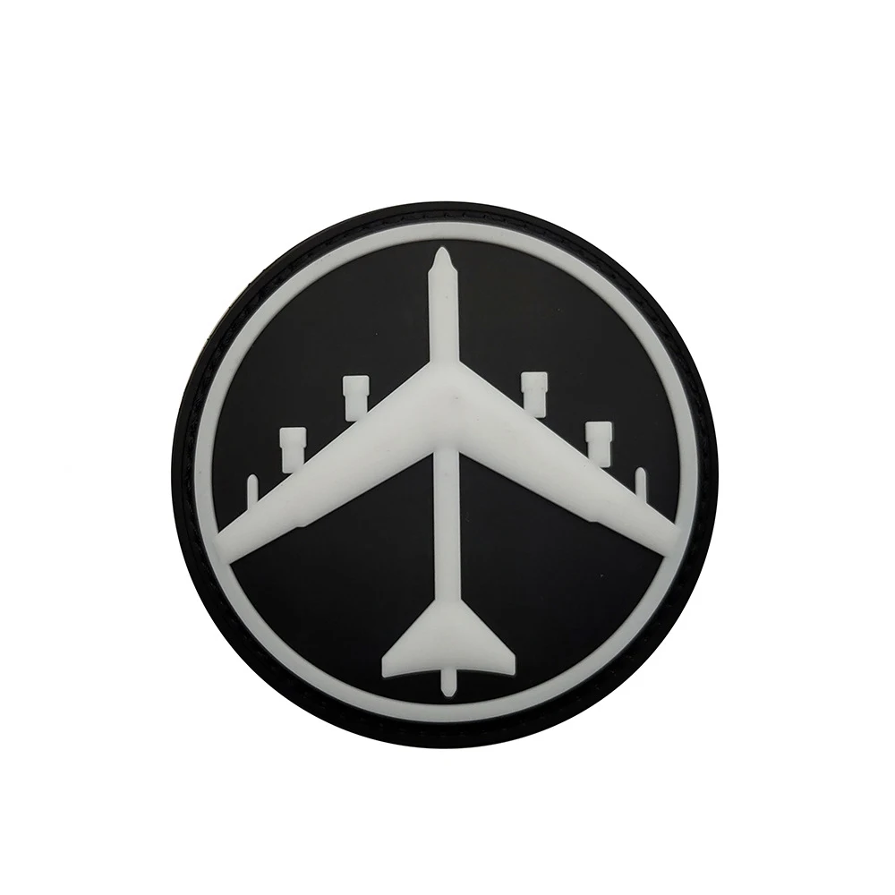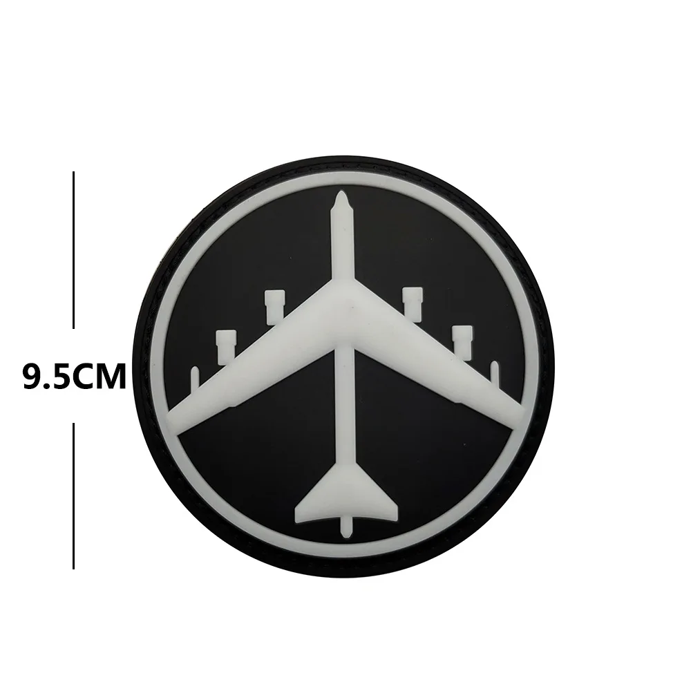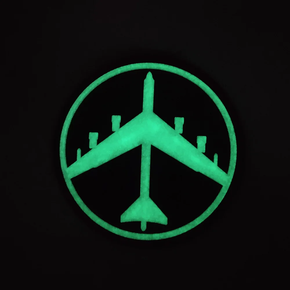 Nombre del producto: Parches de PVC para aviones de bombardero, insignia para brazalete, pegatina, adorno de apliques, parches de goma que brillan en la oscuridad con gancho y bucle