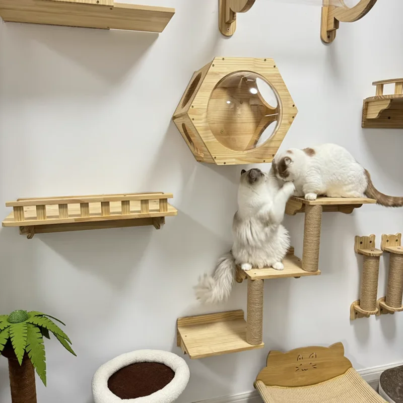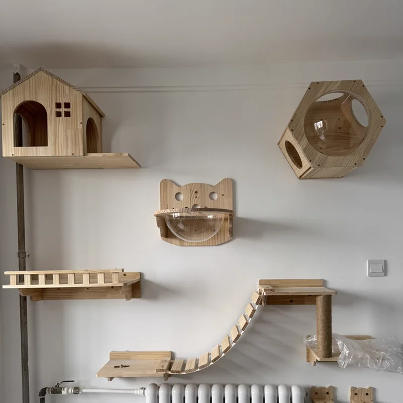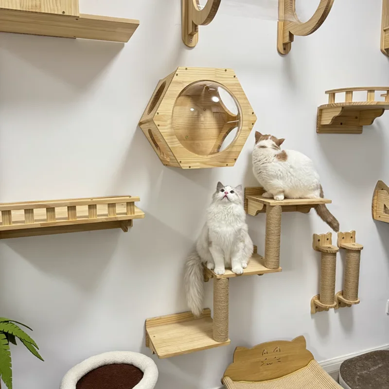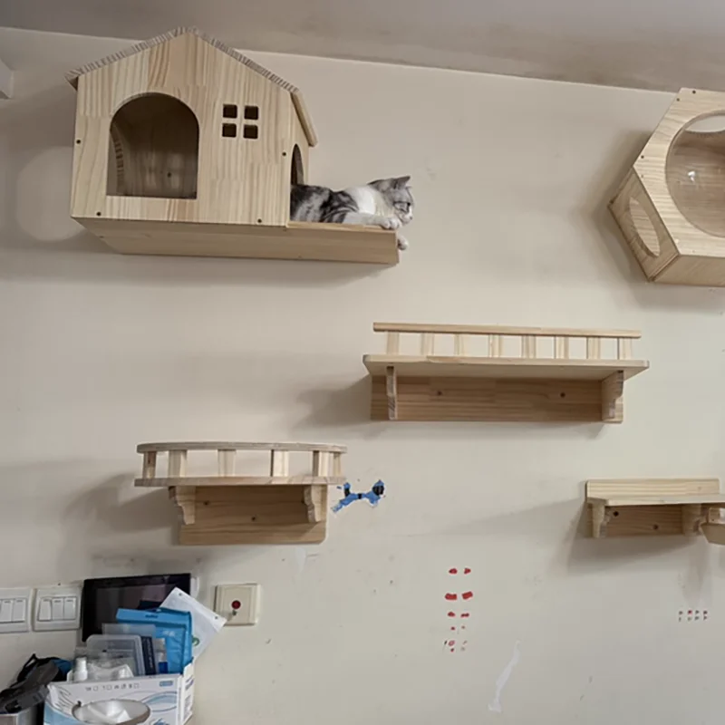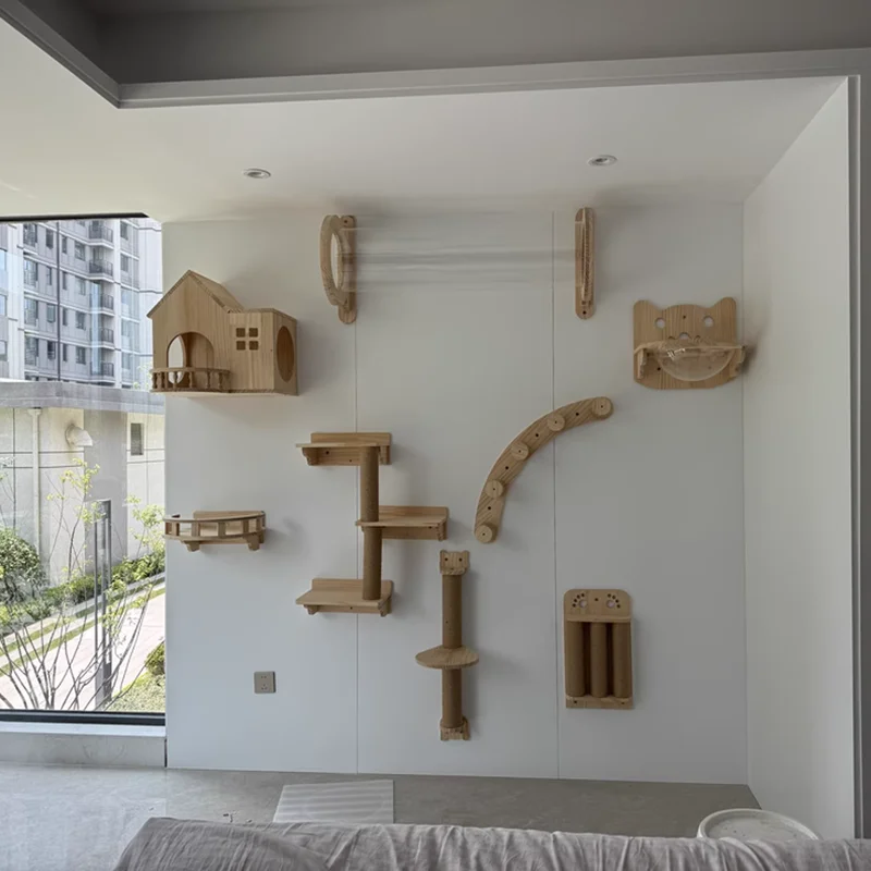 Características de estiloDiseño minimalista moderno que se integra perfectamente en diversos entornos interiores. El diseño montado en la pared ahorra espacio en el piso, presenta una estructura robusta y utiliza materiales seguros y duraderos, lo que equilibra las necesidades de comodidad y actividad de los gatos.