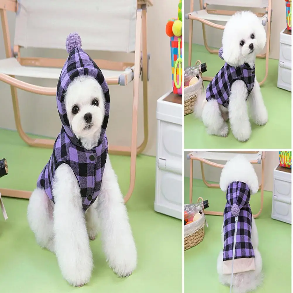 Suéter con capucha para perro a cuadros, suéter de invierno de dos patas para mascotas con capucha, abrigo cálido de invierno para perros, ropa para mascotas para perros pequeños y gatos