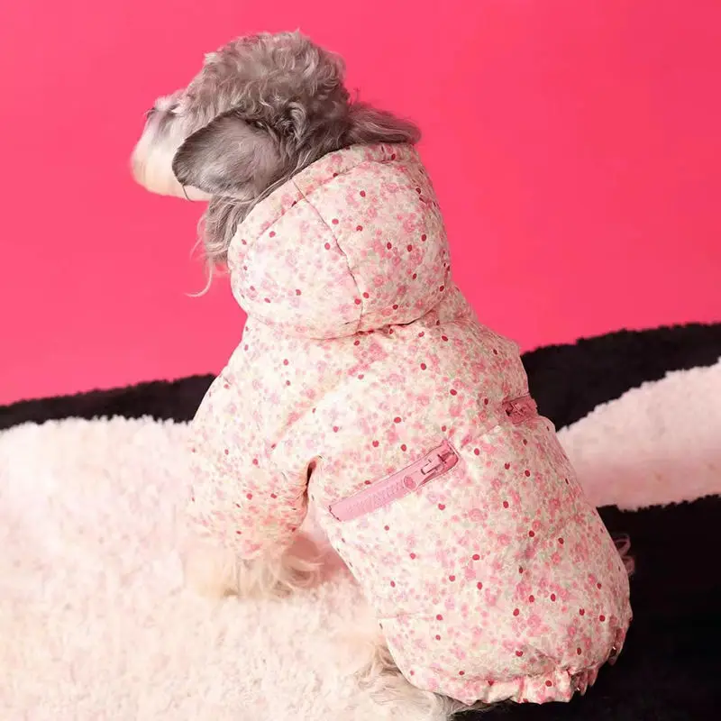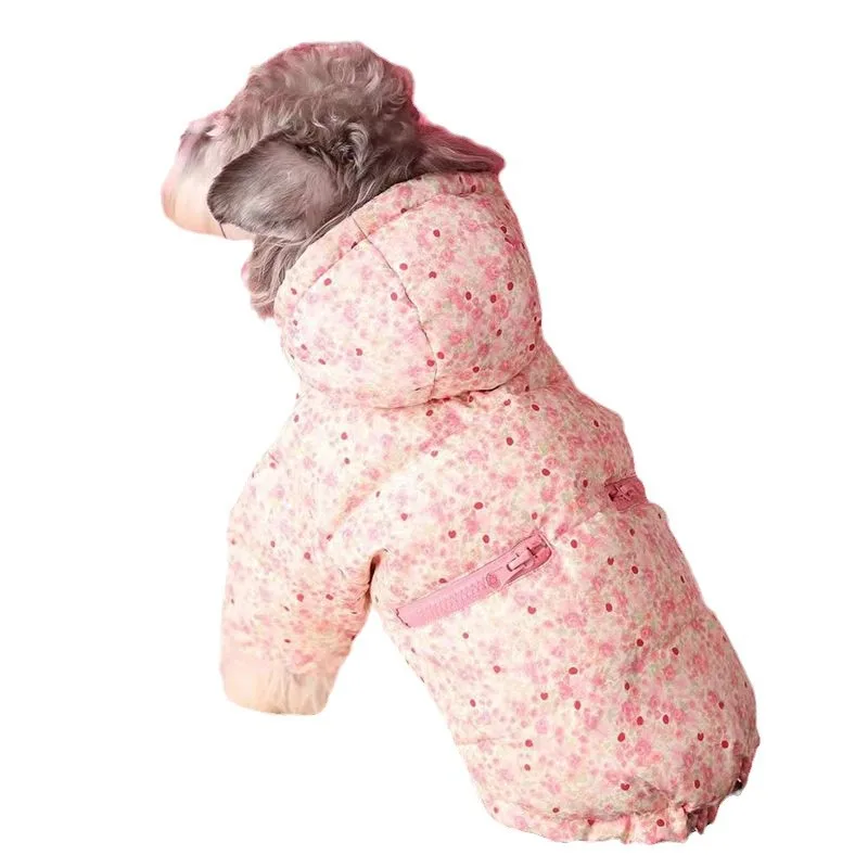 Parkas florales rosas para perros, Otoño Invierno, Schnauzer, perro de peluche, gato, ropa de algodón gruesa Floral cálida, ropa para cachorros para perros pequeños