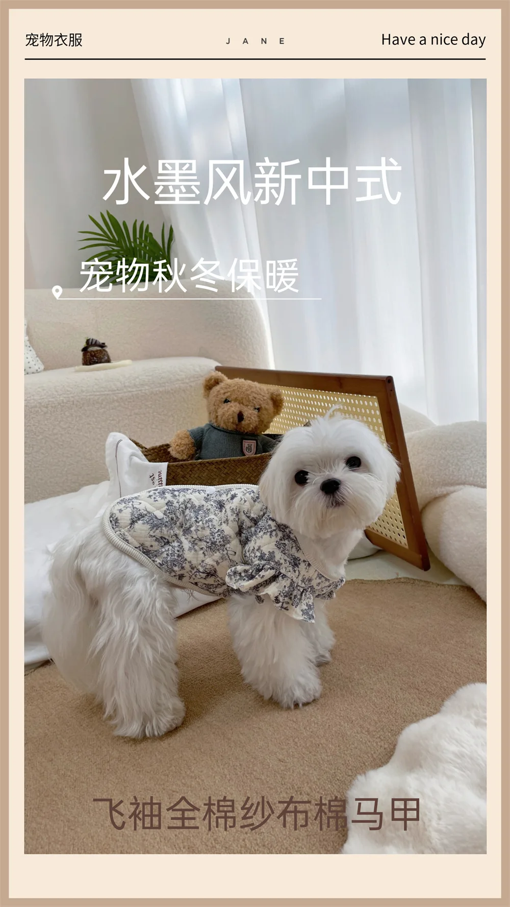 Parkas de gasa con mangas voladoras para mascotas, ropa para el hogar, ropa de otoño e invierno para perros pequeños, chaleco Floral cálido