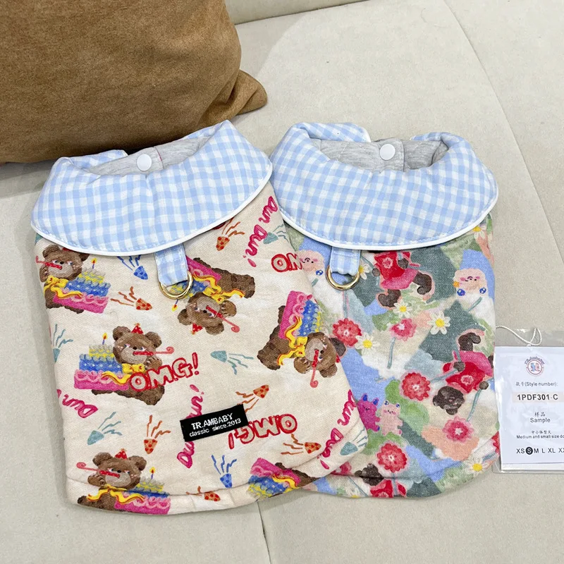 Parkas para perros, chaqueta con cuello a cuadros y cárdigan con estampado de osito de peluche, se puede tirar, ropa para cachorros pequeños y gatos, Otoño e Invierno