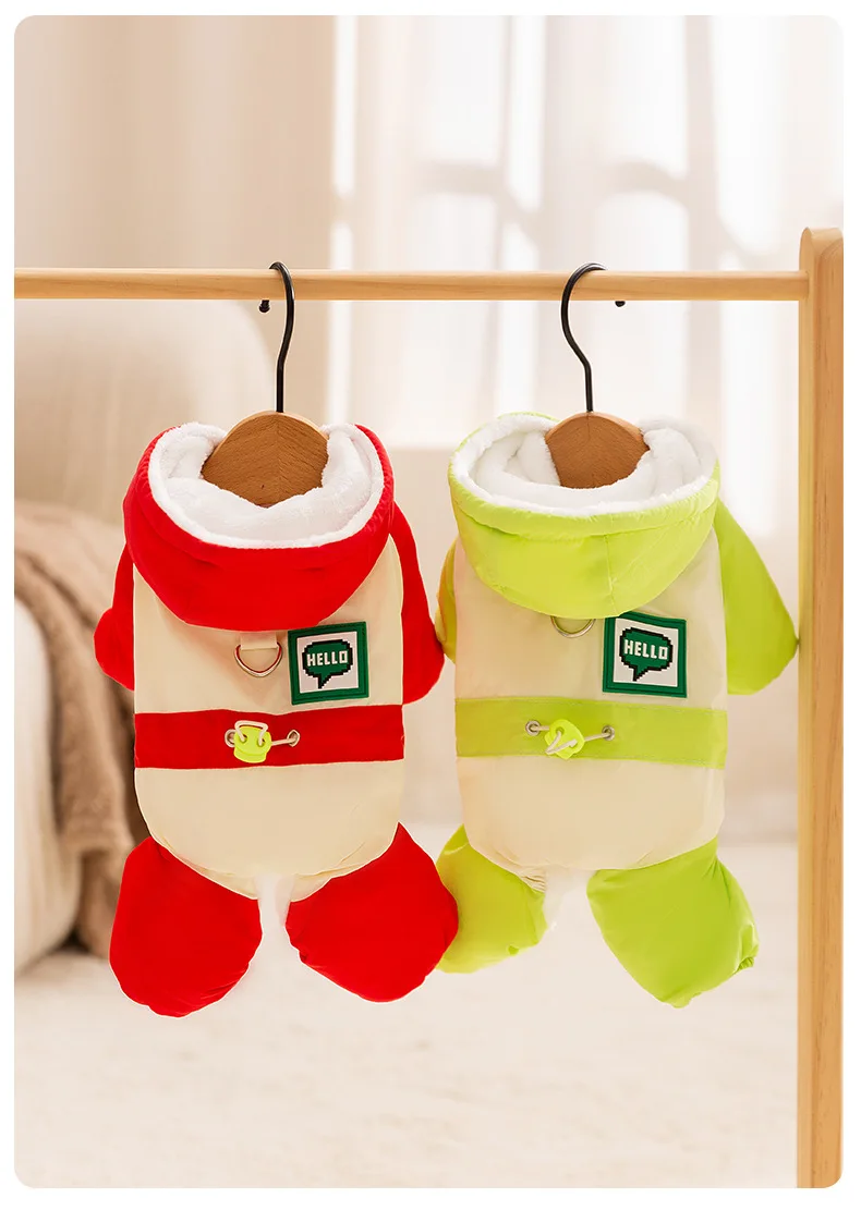 Parkas para perros de otoño e invierno, chaqueta gruesa con capucha de cuatro patas y empalme contrastante para perros pequeños, ropa para gatos y perros - imagen 2