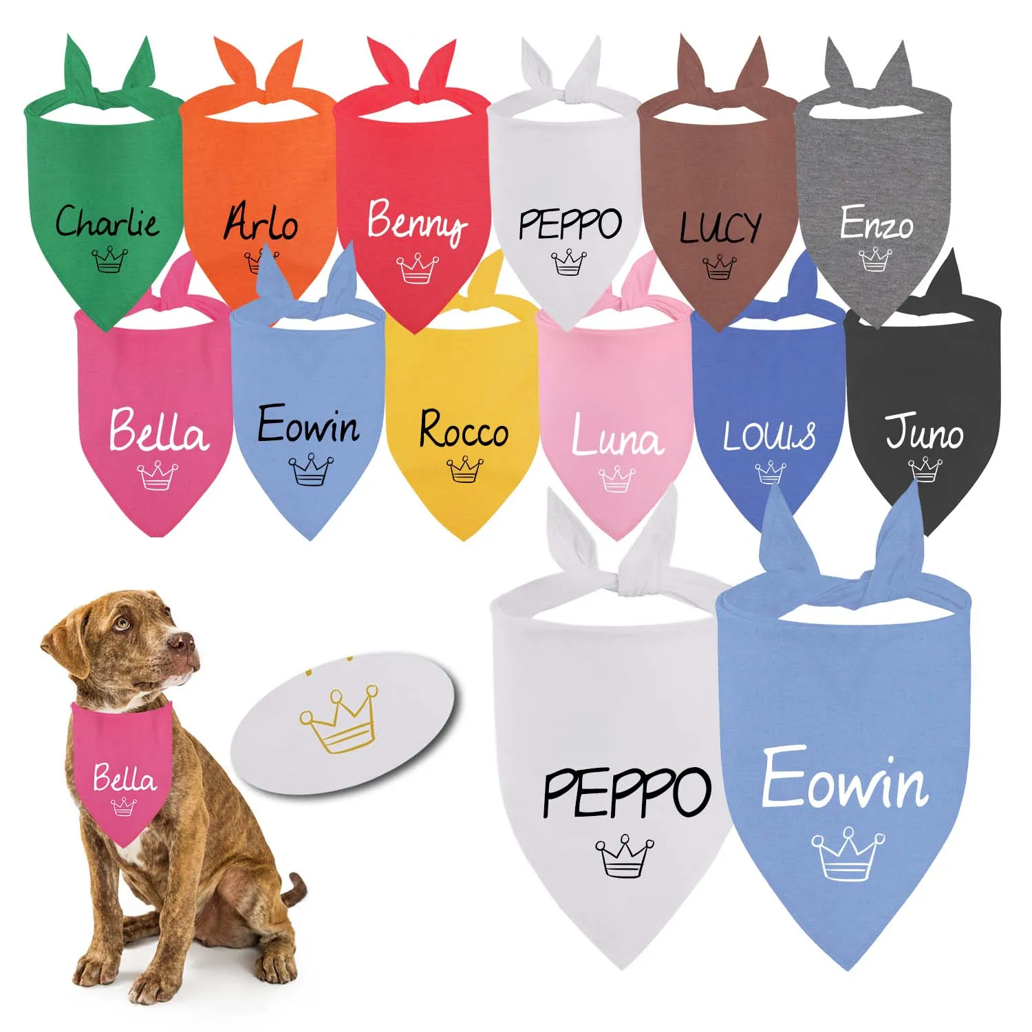 Patrón de corona Triangular para perro personalizado, Bandana para mascotas, bufanda personalizada, babero para accesorios para cachorros y gatos