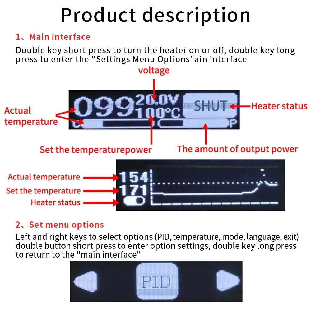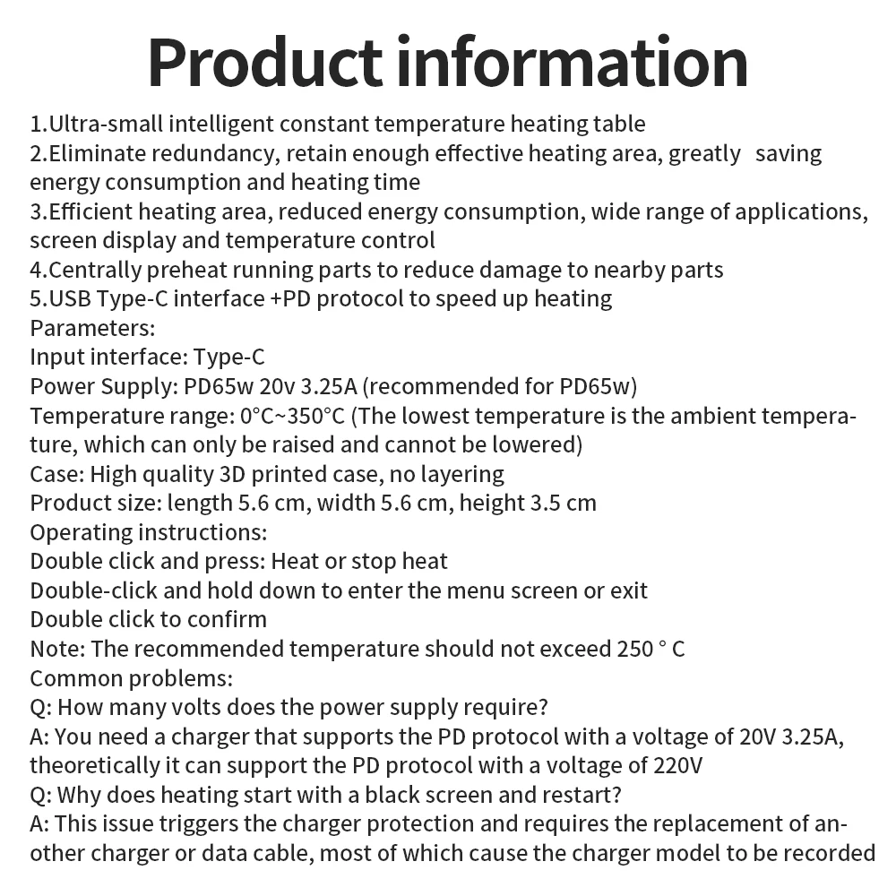 Interfaz USB tipo C + protocolo PD para un calentamiento más rápido.