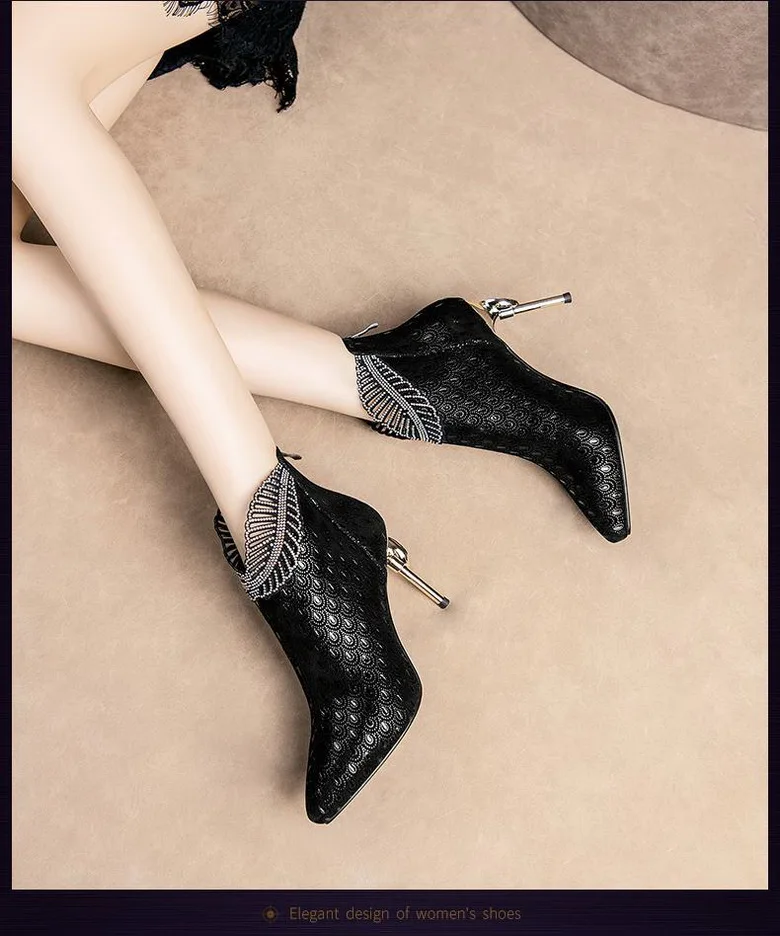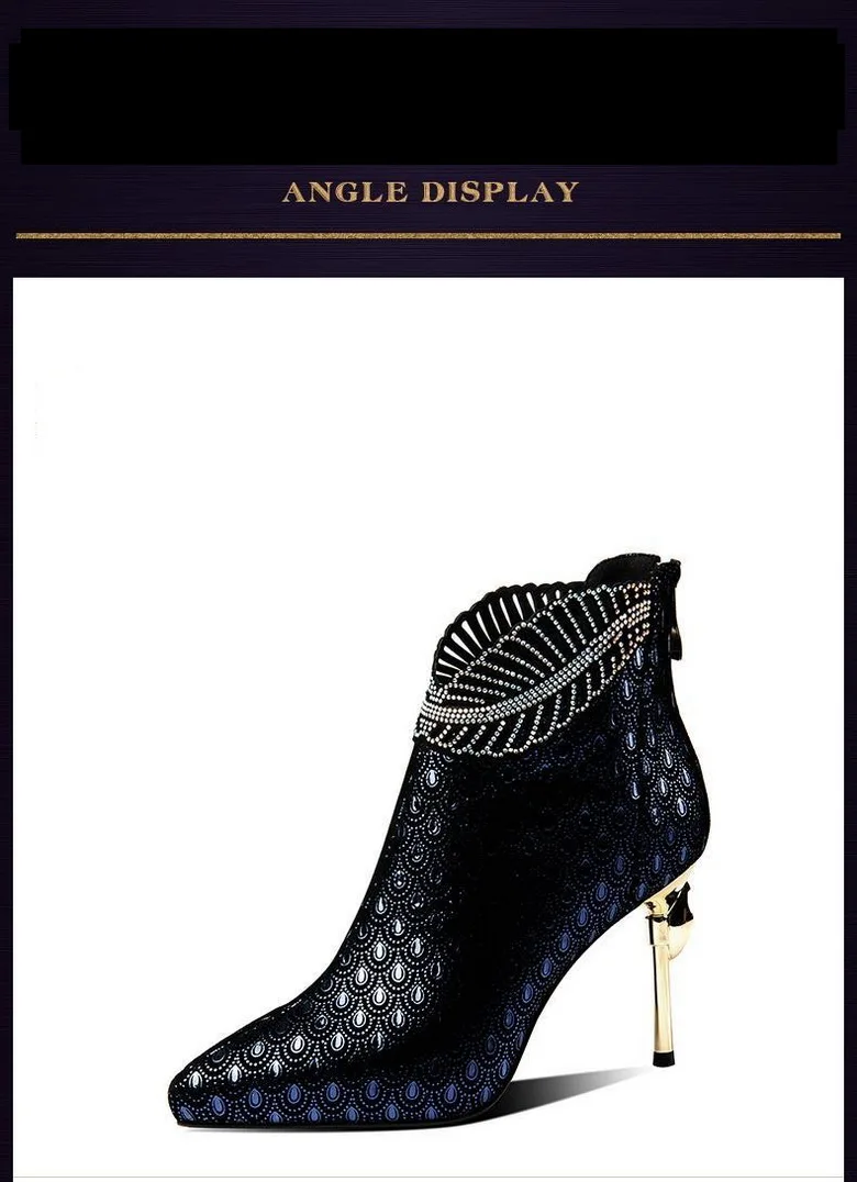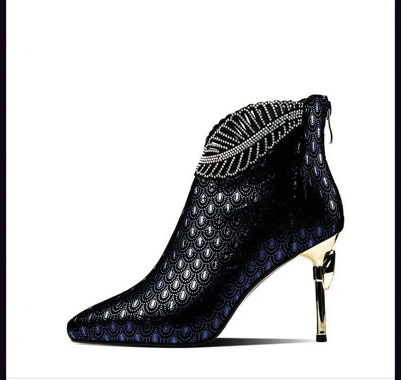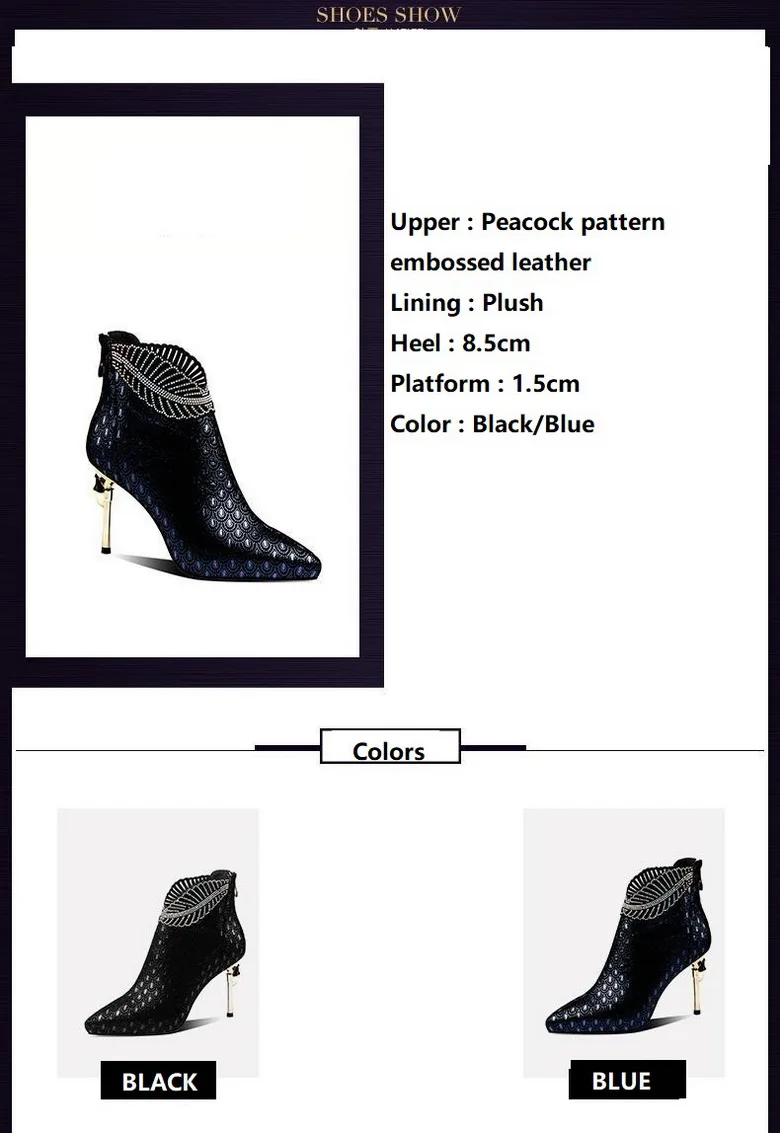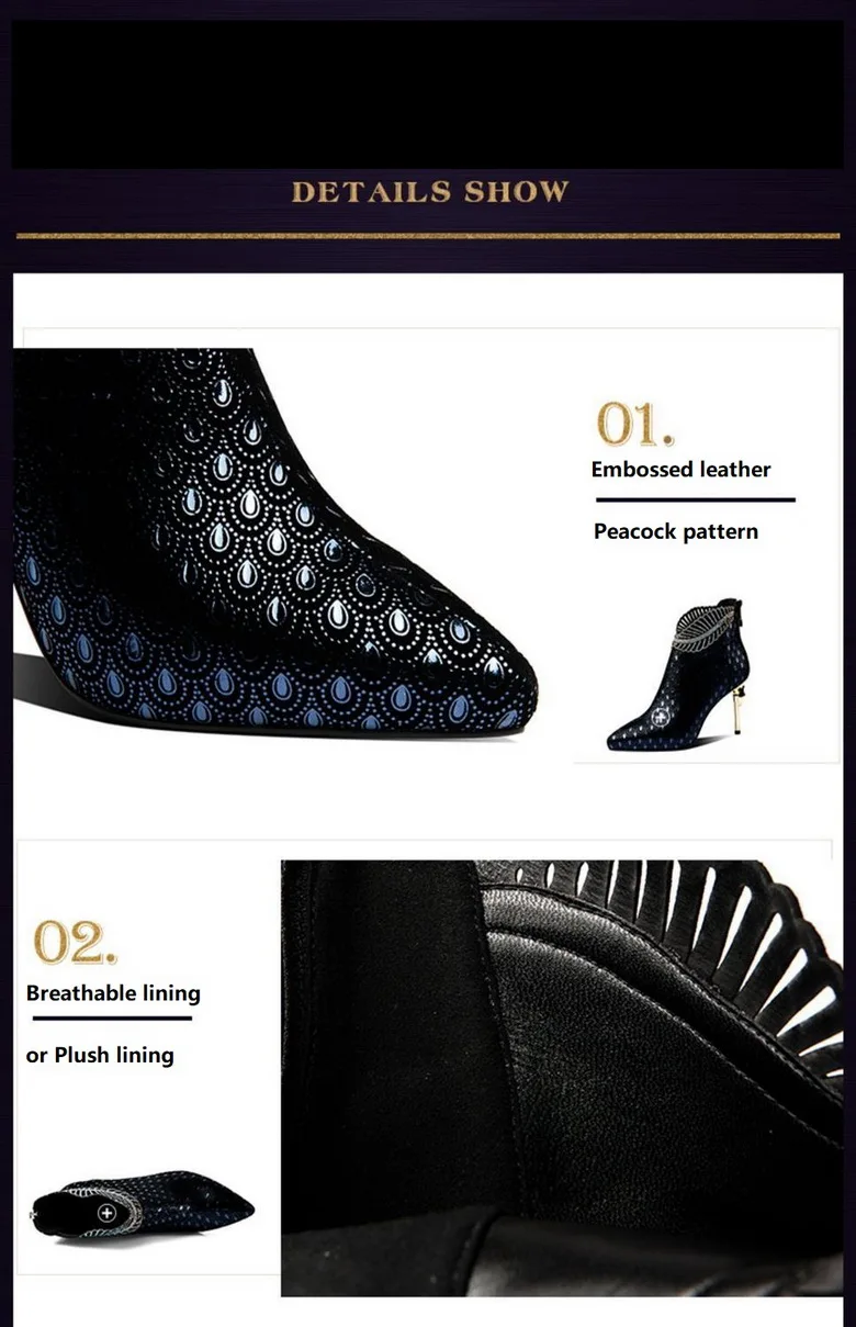 Peacock Pattern Embossed Leather Boot Woman Ankle Boots Low Heel Party Women's Winter Shoes 2021 Female Footware Autumn