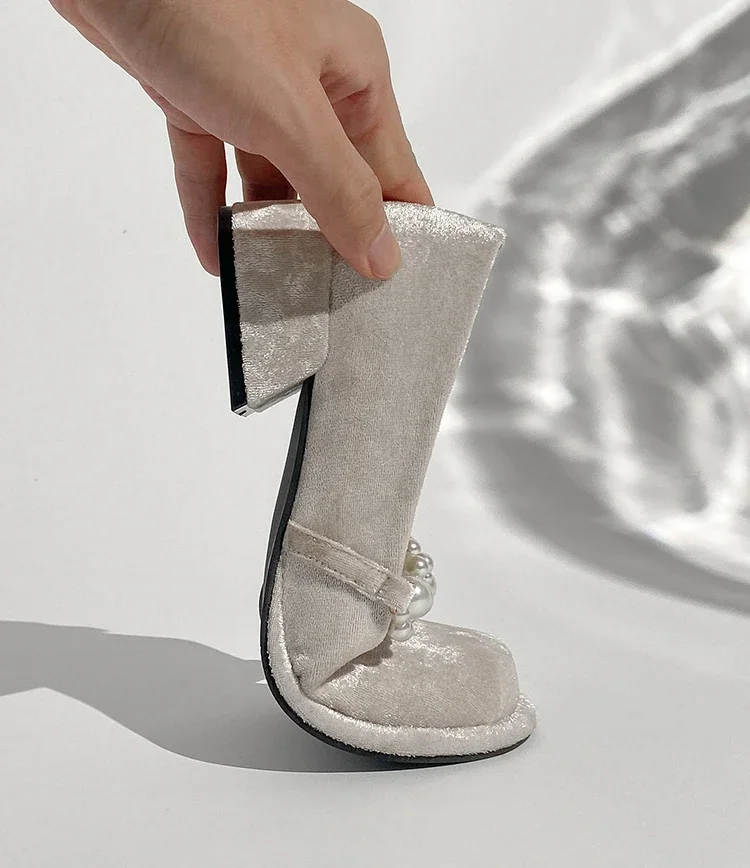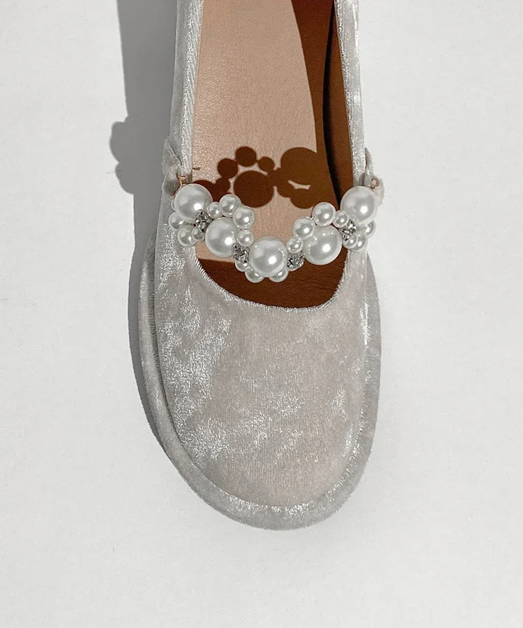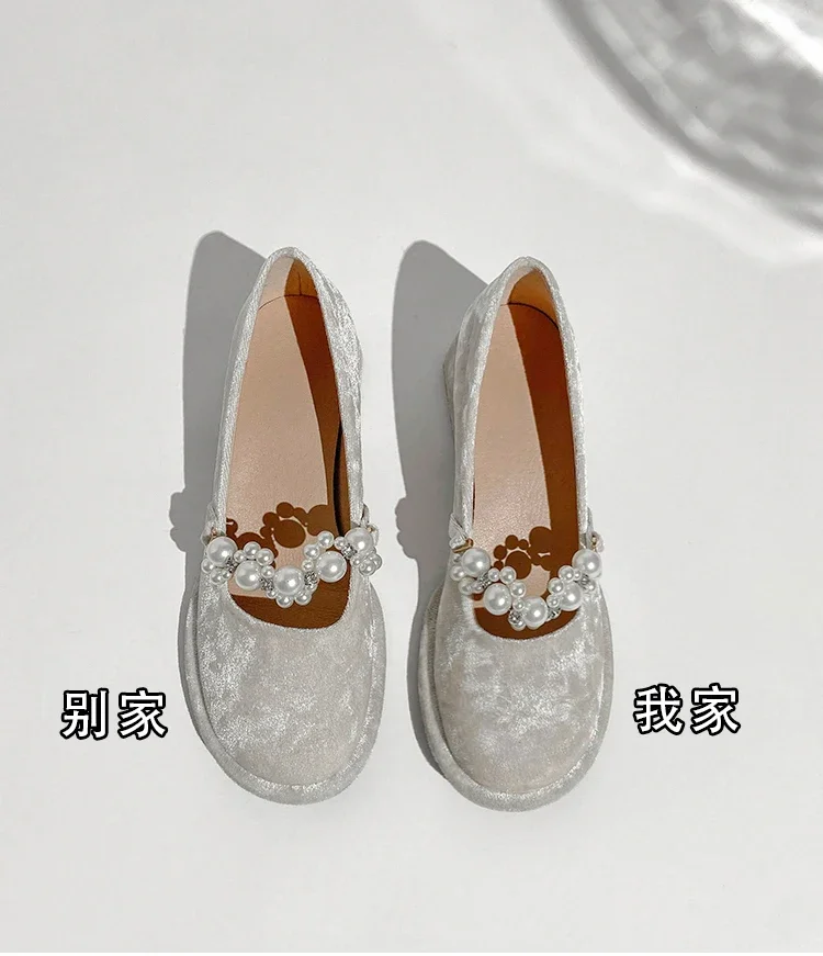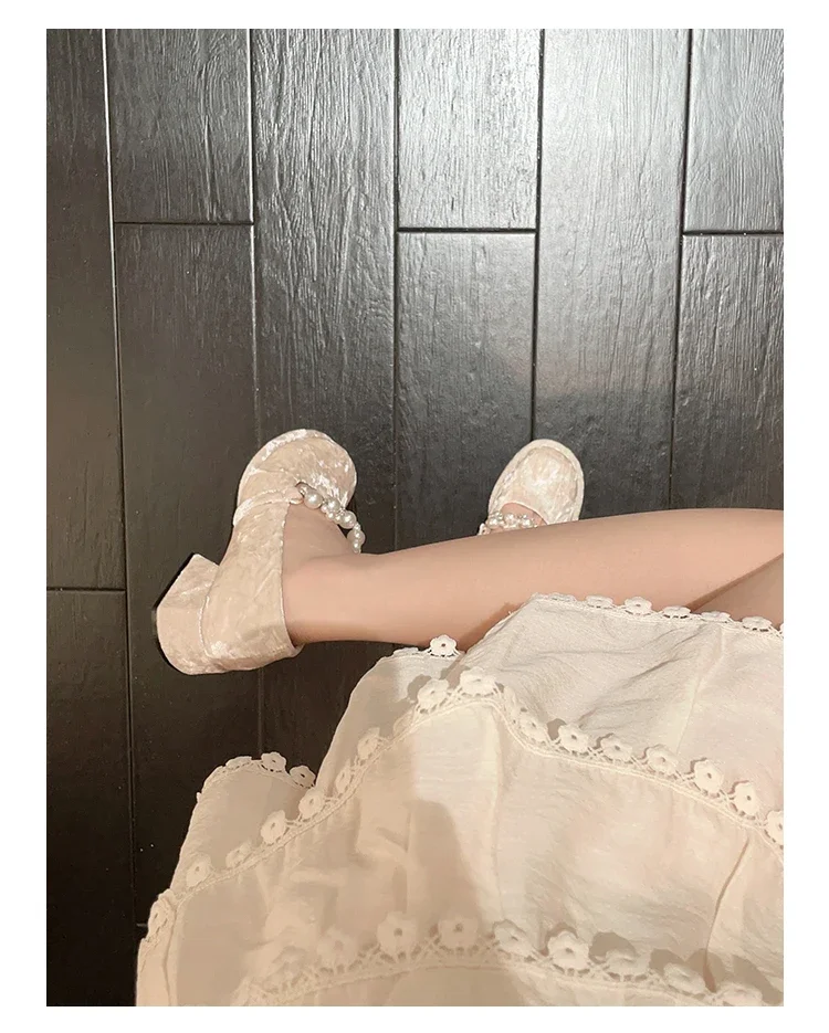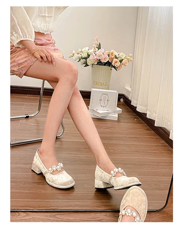Pearl Flower-zapatos Mary Jane de suela gruesa para mujer, Sandalias de tacón alto con plataforma, para fiesta, 2024