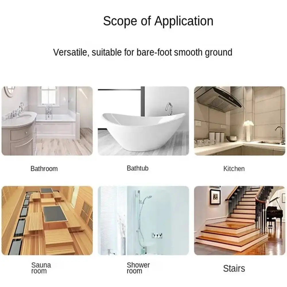 4. Aplicable en múltiples escenas: nuestras pegatinas de ducha son transparentes y se pueden usar en escaleras de madera, suelos de baños y piscinas, y azulejos, lo que garantiza la máxima seguridad sin comprometer la estética.
