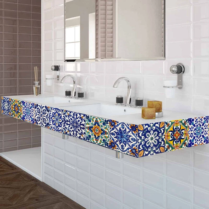 4. Una variedad de colores clásicos y colores mezclados crean un ambiente relajante, pero también es adecuado para estilos más tradicionales y modernos. Con su diseño clásico y superficie lisa, este Adhesivo de pared aporta un efecto de pulido mejorado a cualquier salpicadero de cocina y baño, decoración de paredes y entorno de tocador.