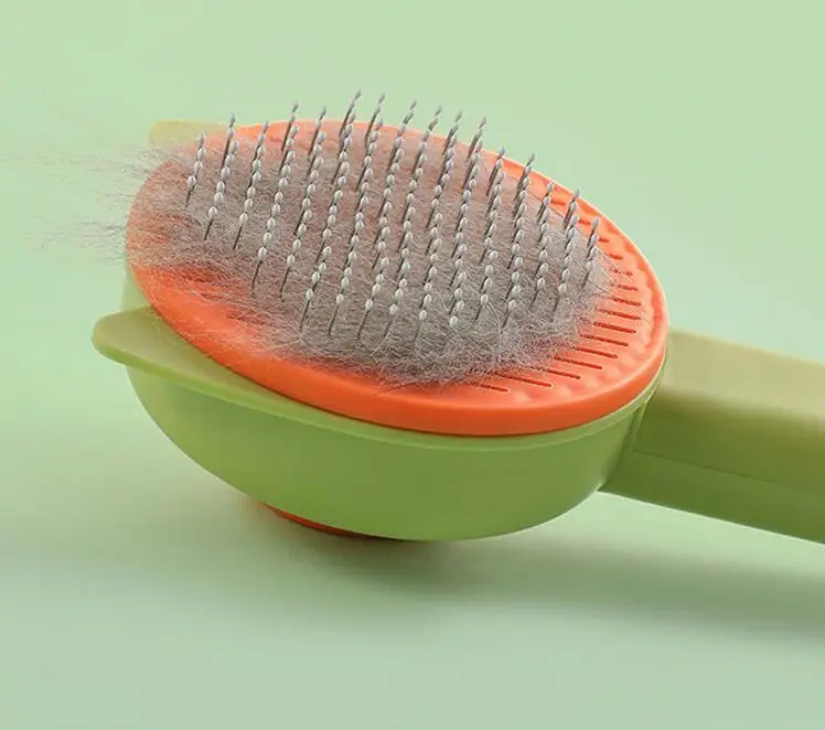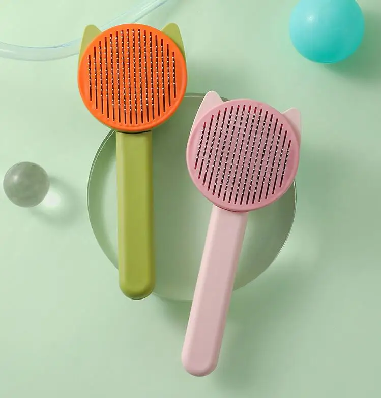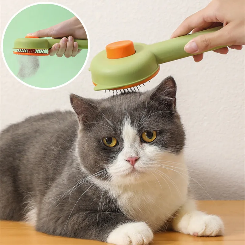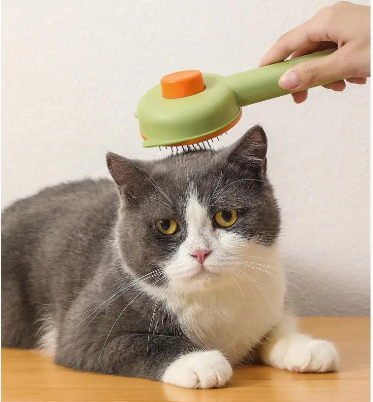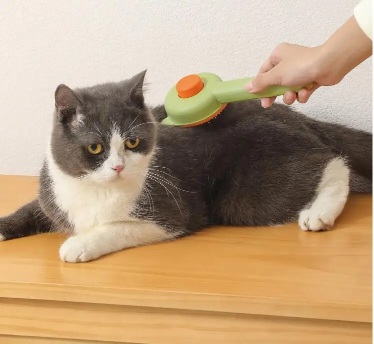 Peine de acero inoxidable para gatos, cepillo de masaje para gatos, removedor de pelo de mascotas de un botón, Herramientas de limpieza de aseo para mascotas, suministros para mascotas