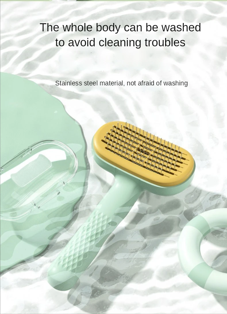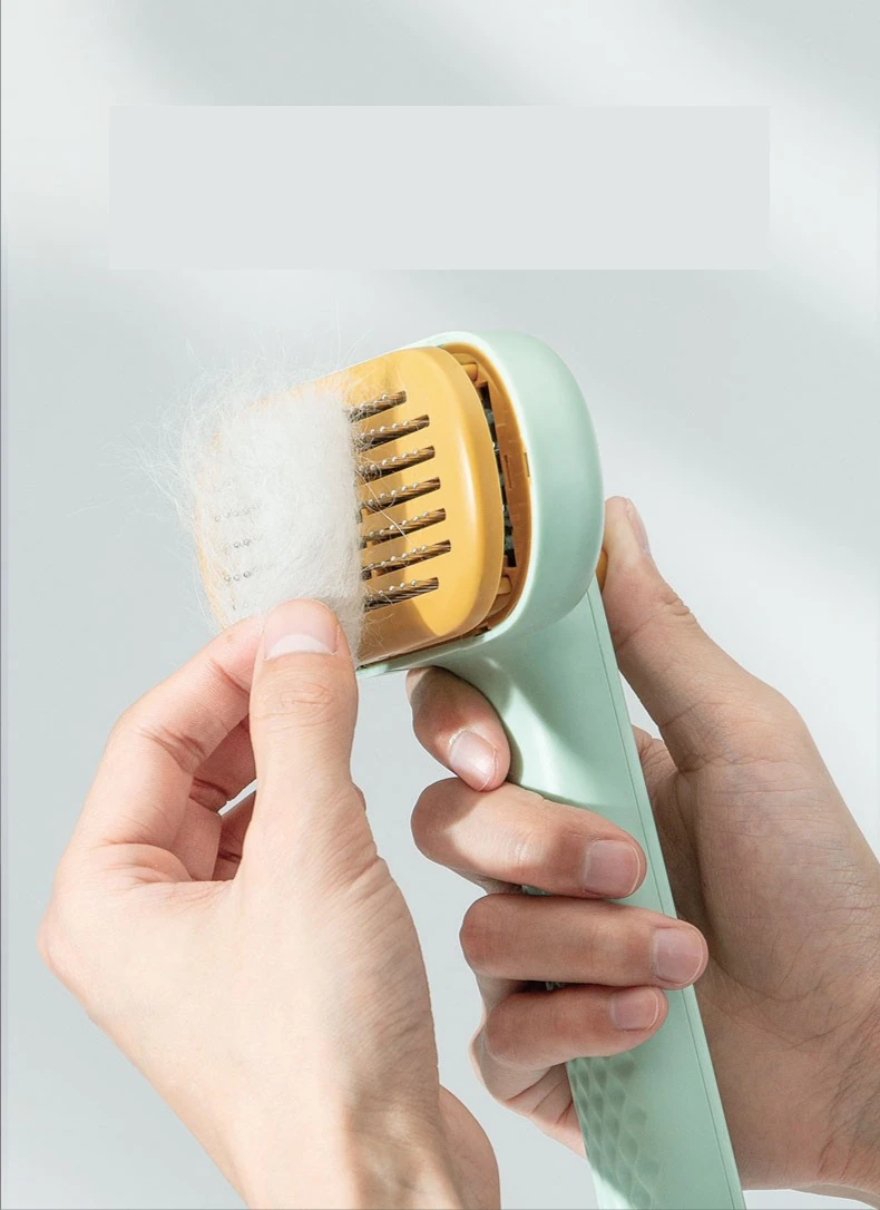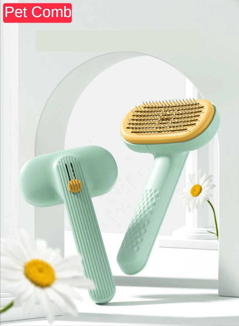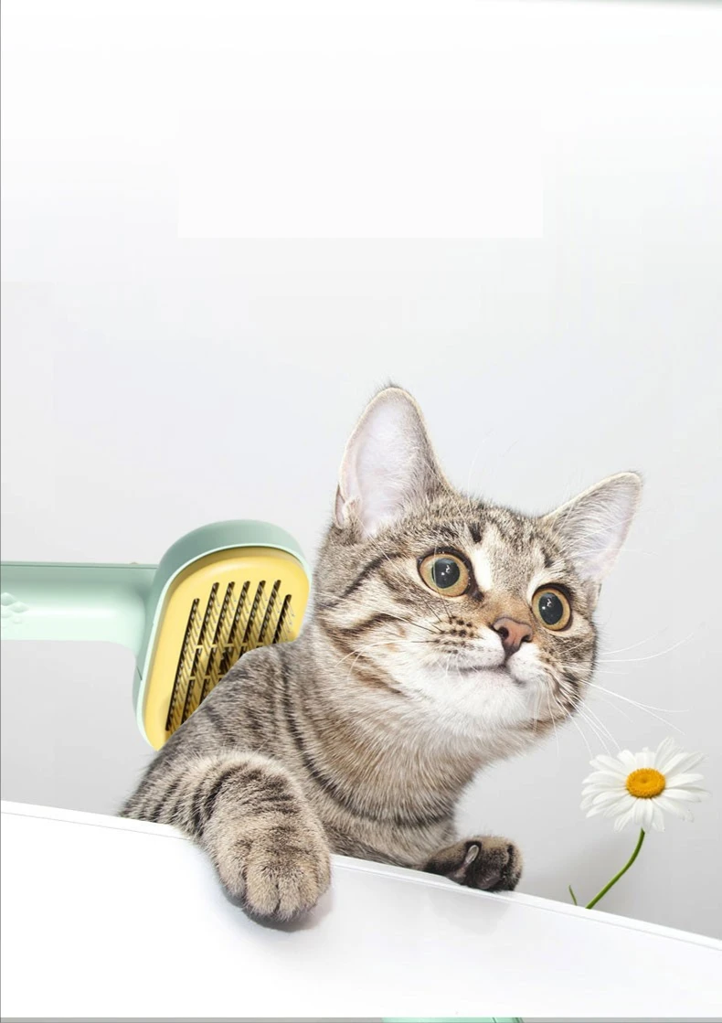 Peine para mascotas, peine de masaje de acero inoxidable para perros y gatos, cepillo cortador autolimpiante, cepillo de aseo para desprendimiento, elimina el pelo suelto enredado