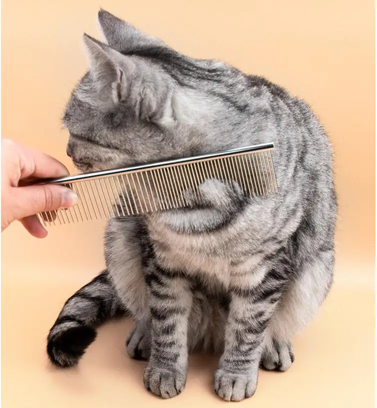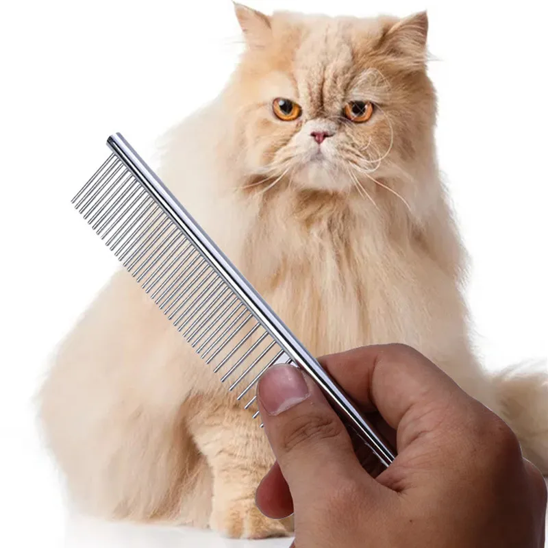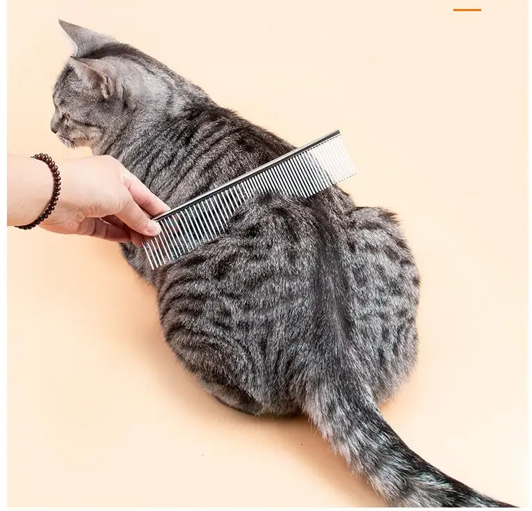 Peine de acero inoxidable para mascotas, Herramientas de limpieza de pelo largo y liso para gatos, cepillo para perros, suministros para el cuidado de mascotas