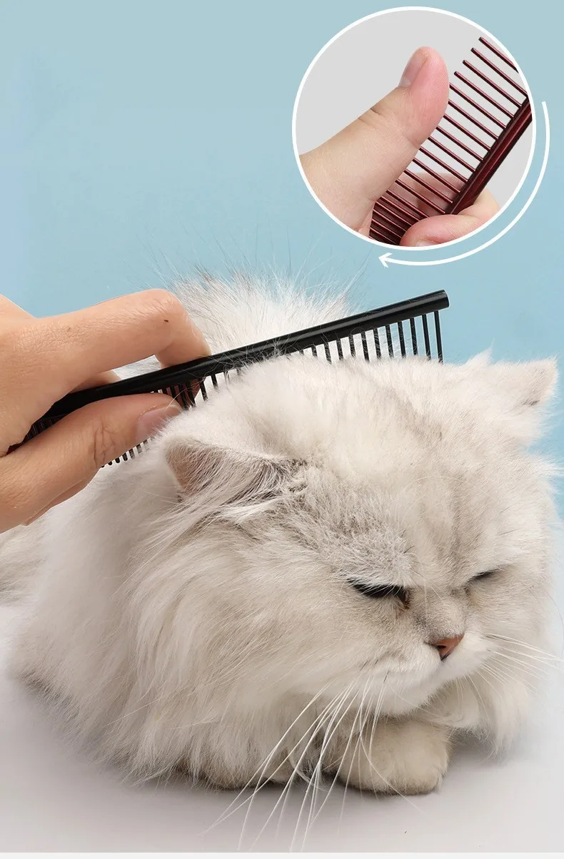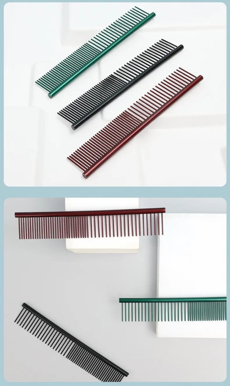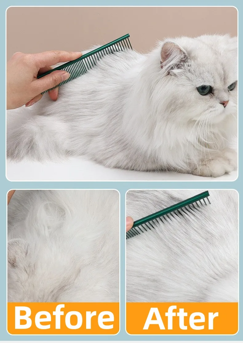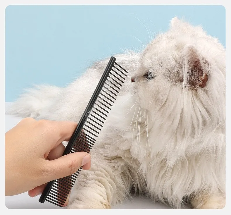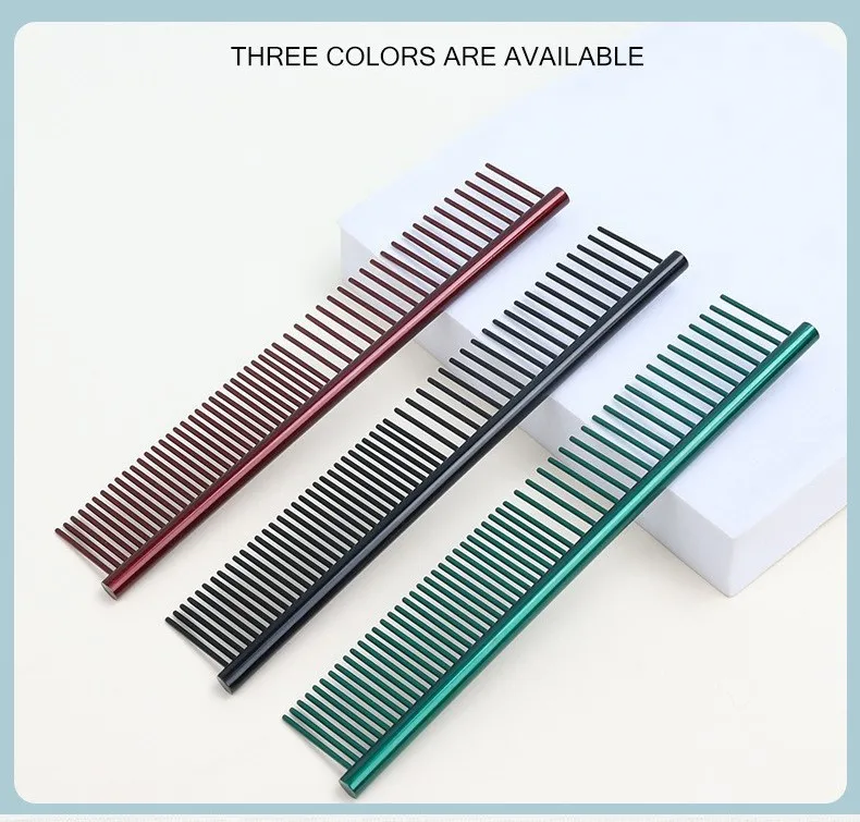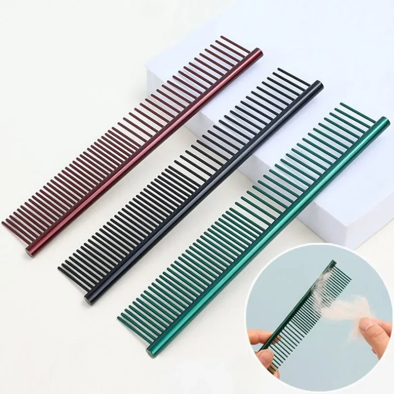 Peine de acero inoxidable para perros y gatos, peine recto con apertura de nudo, removedor de pelo, cepillo de masaje, suministros para mascotas