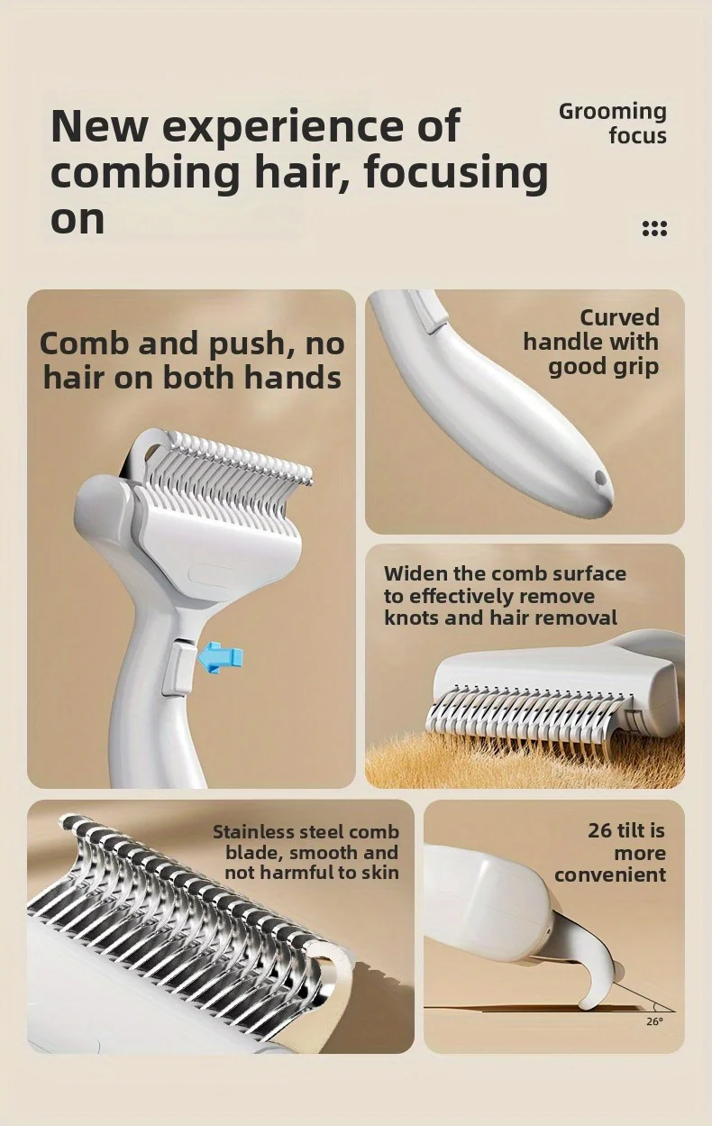 Peine de adelgazamiento de perros de acero inoxidable, cepillo de depilación flotante con mango ergonómico, herramienta de aseo para desprendimiento y Control de enredos