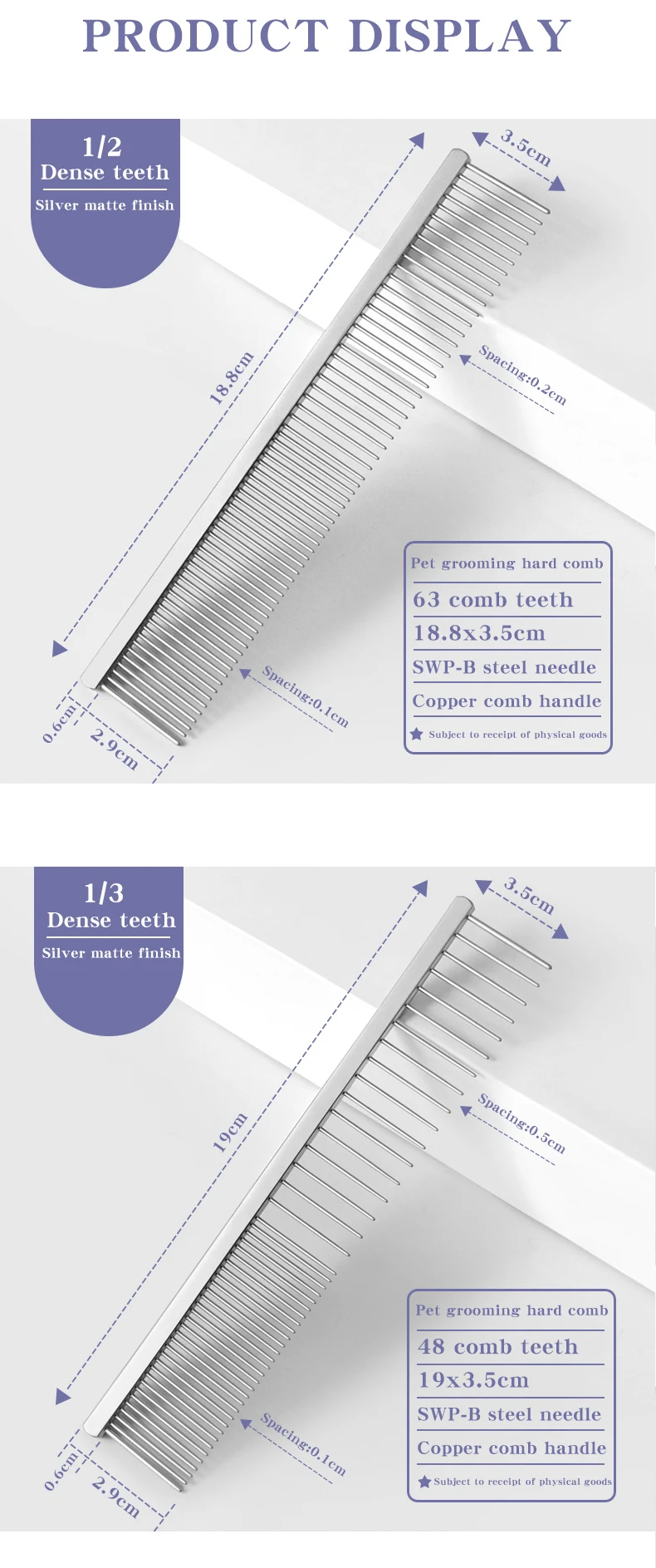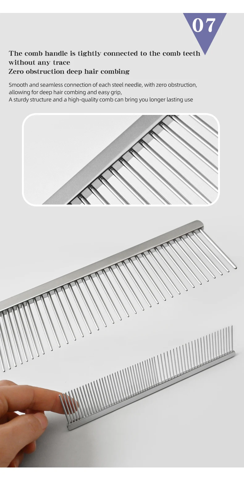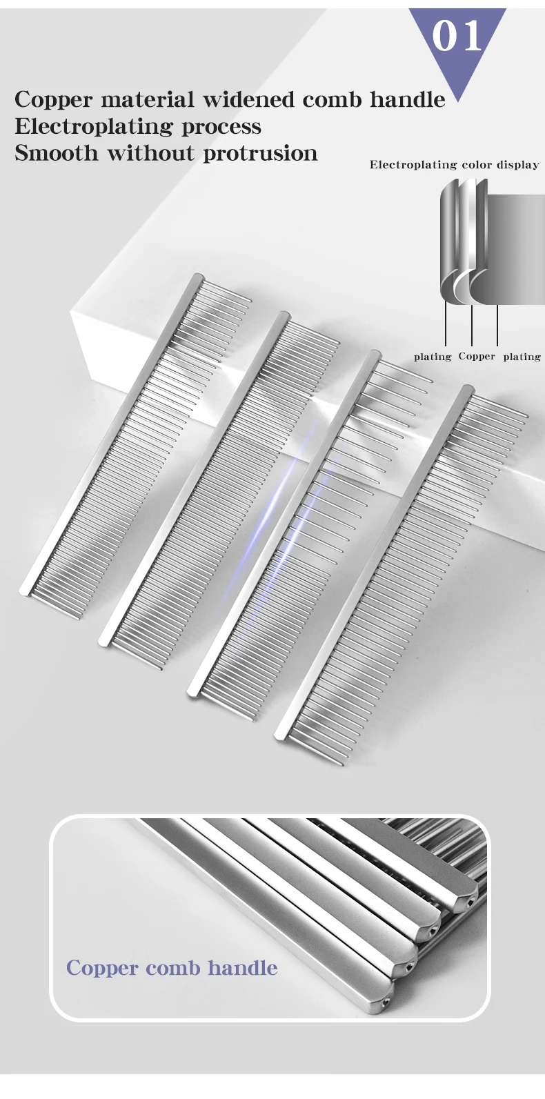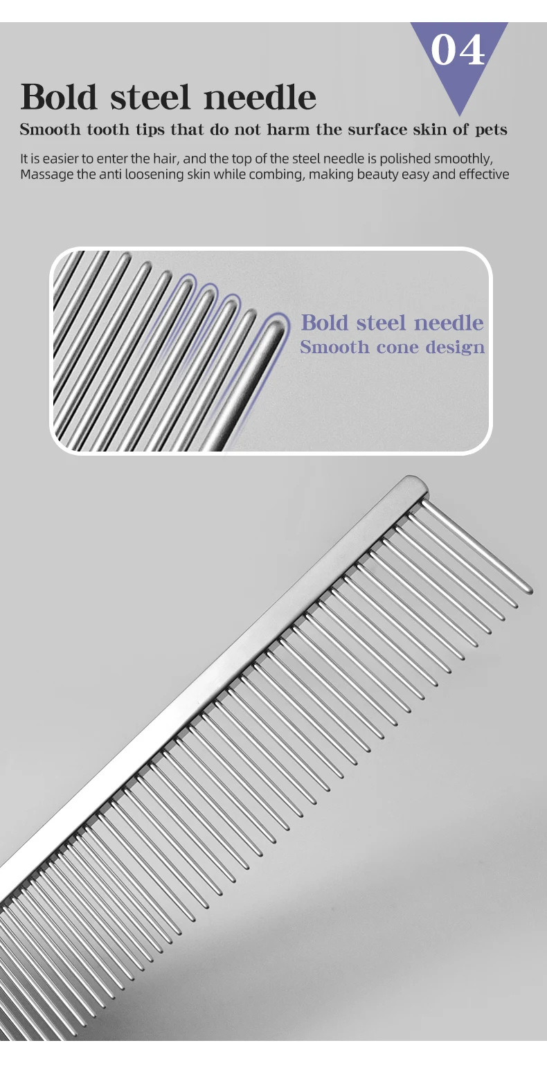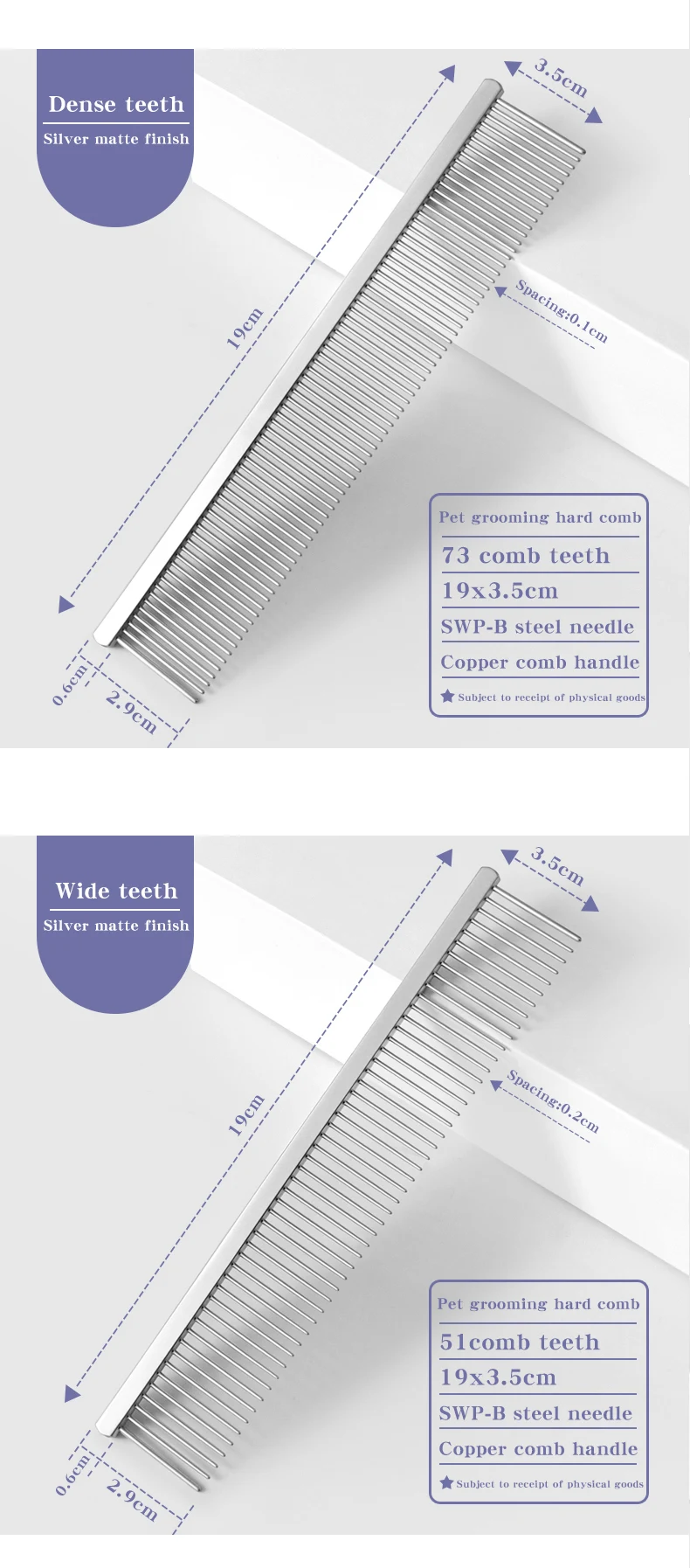 Peine anudado de belleza para mascotas, peine rígido para el cuidado de perros, peinado para el cabello, agujas de acero no deformará, mango de peine de cobre para ensanchar