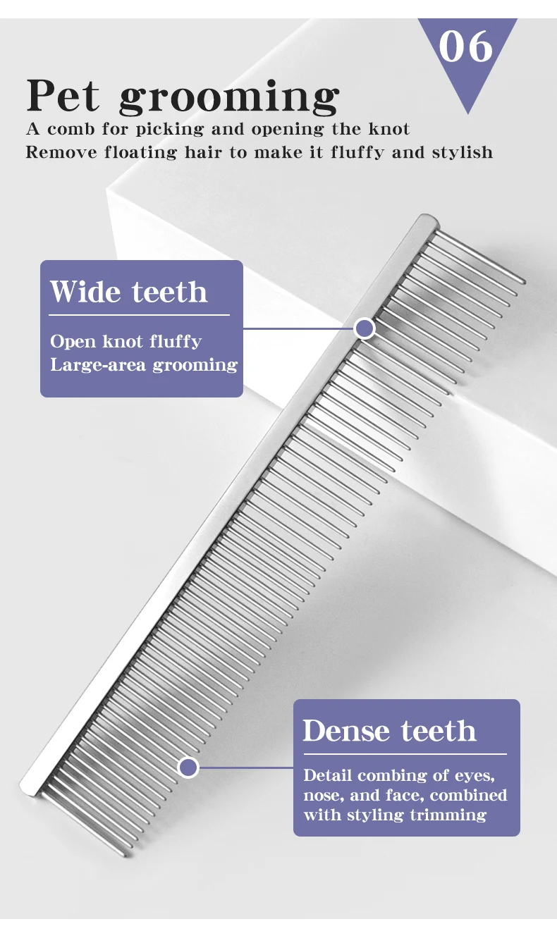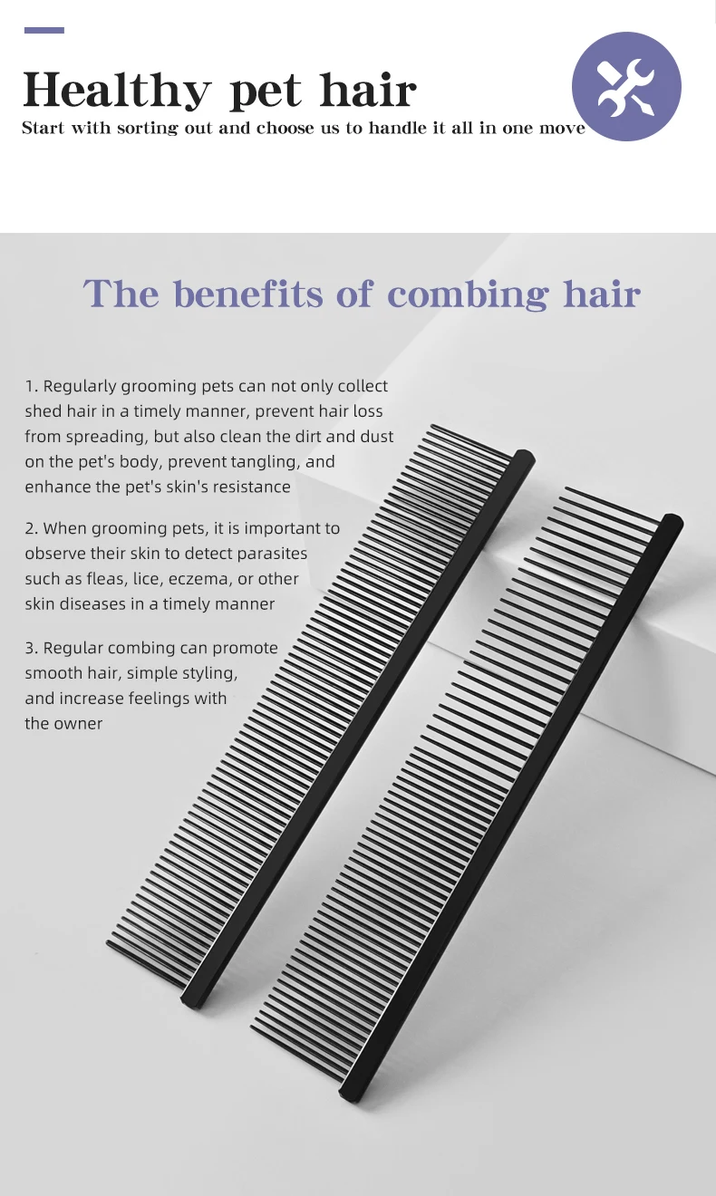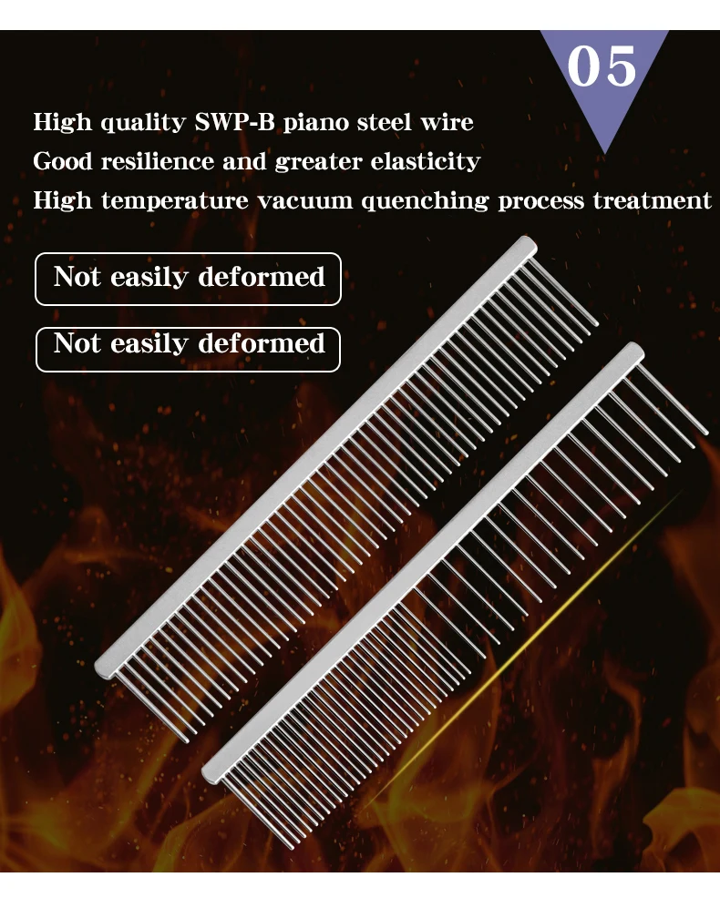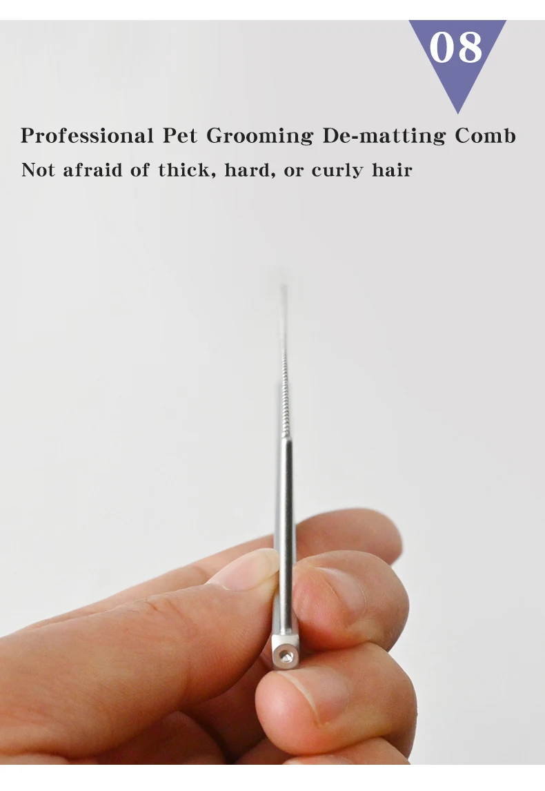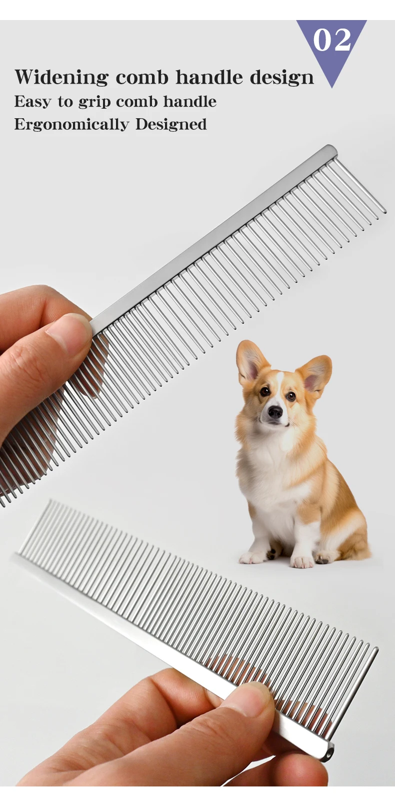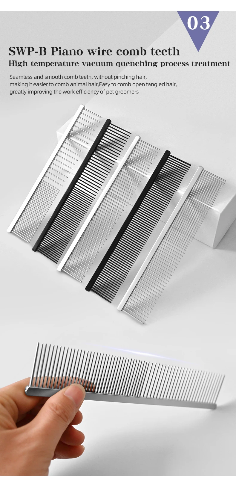 Peine anudado de belleza para mascotas, peine rígido para el cuidado de perros, peinado para el cabello, agujas de acero no deformará, mango de peine de cobre para ensanchar