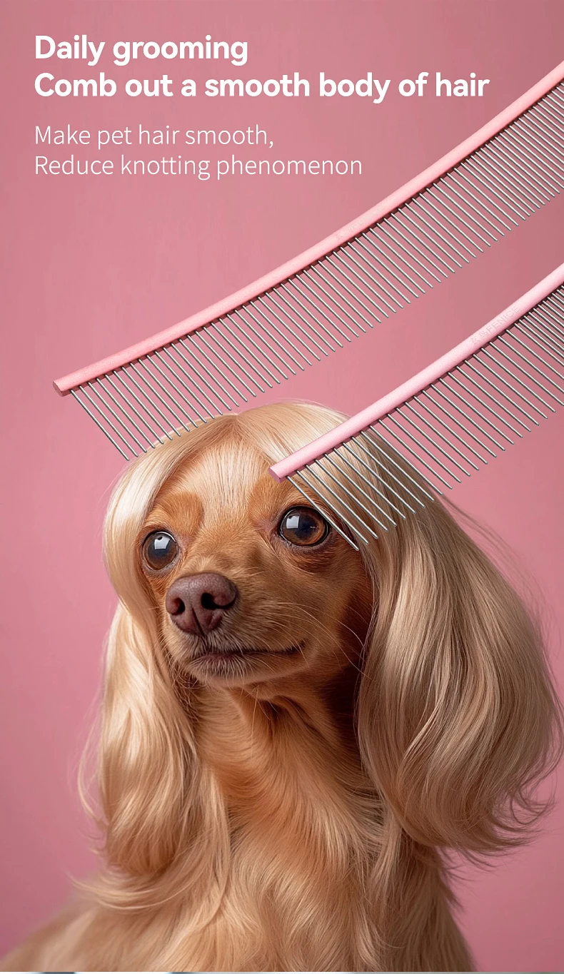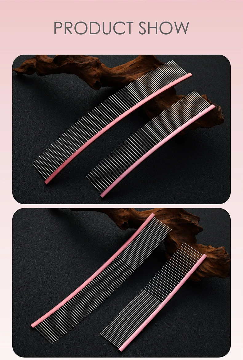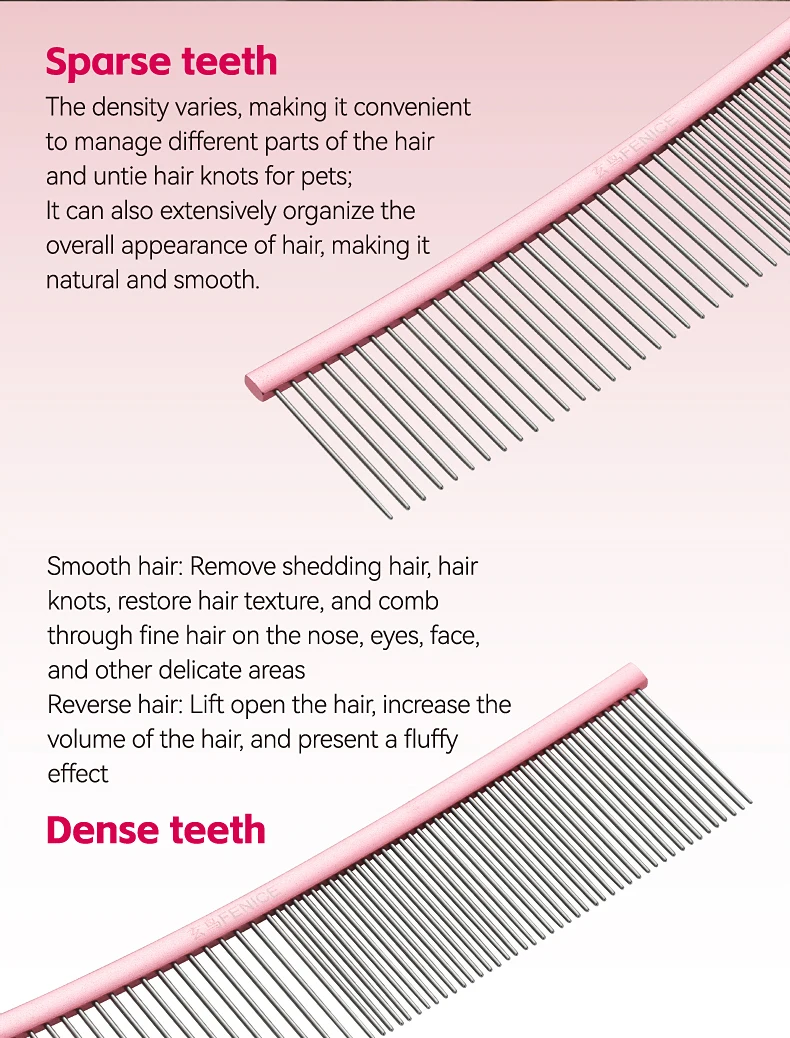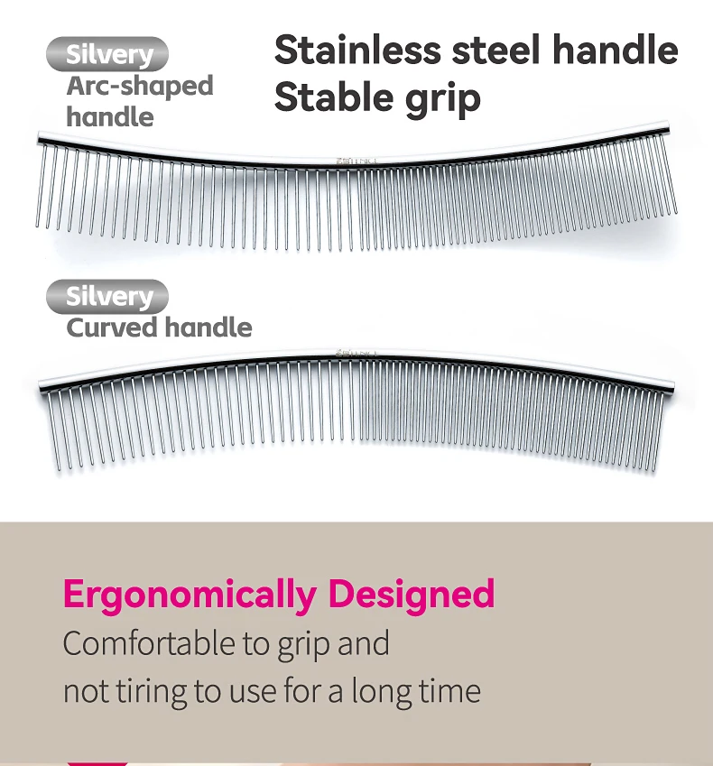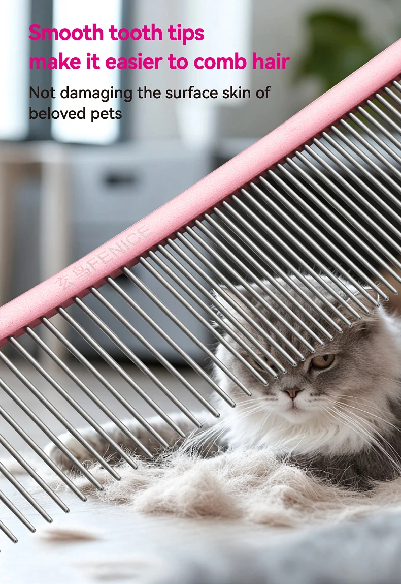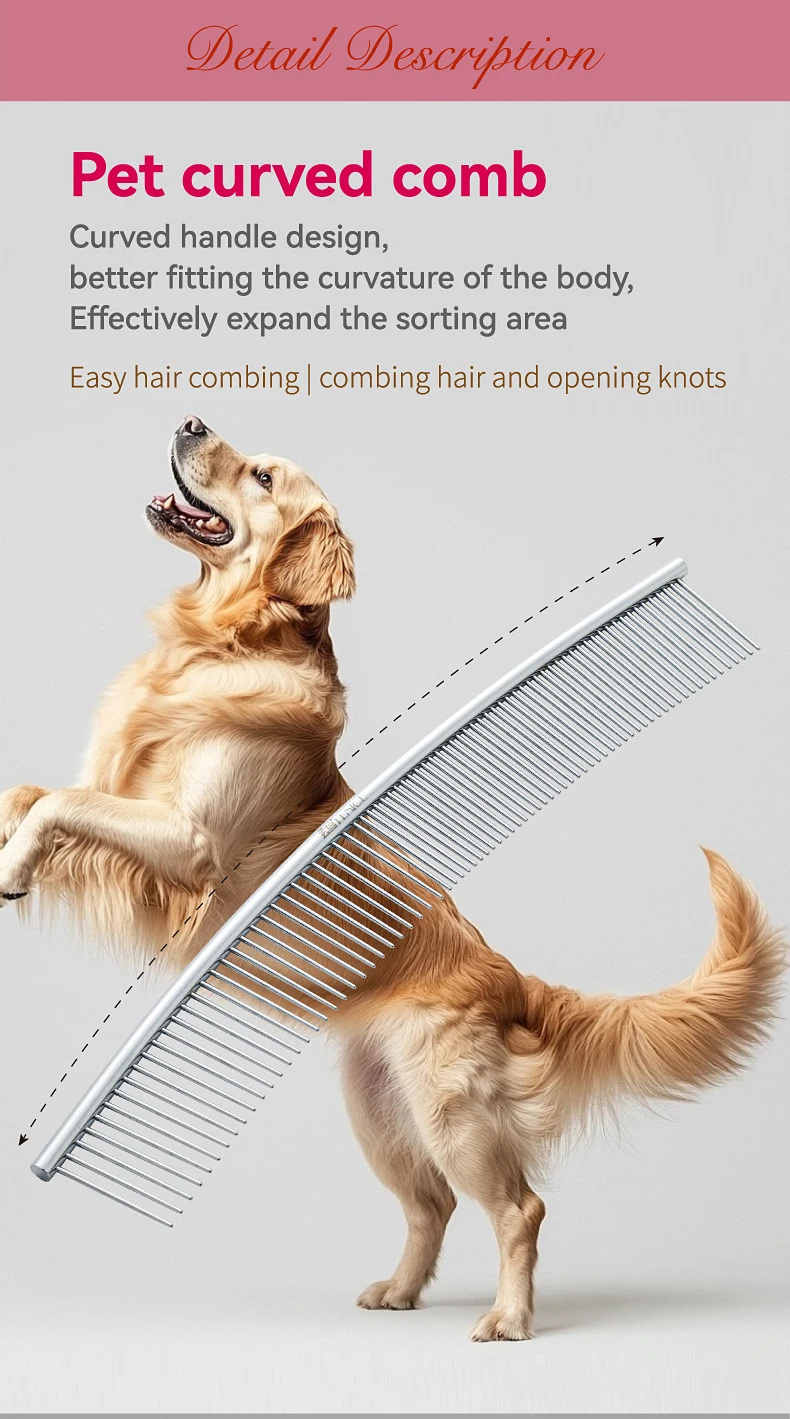 Peine de aseo curvo para mascotas Fenice, cepillo de acero inoxidable en forma de arco con dientes densos y esparsos para perros y gatos, suministros de aseo para mascotas