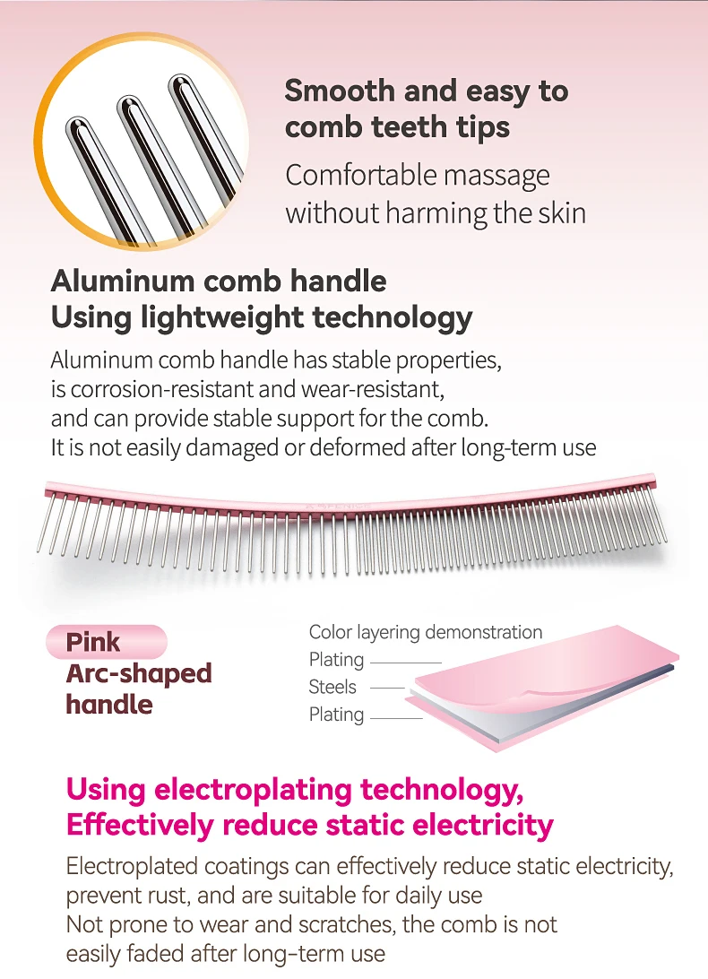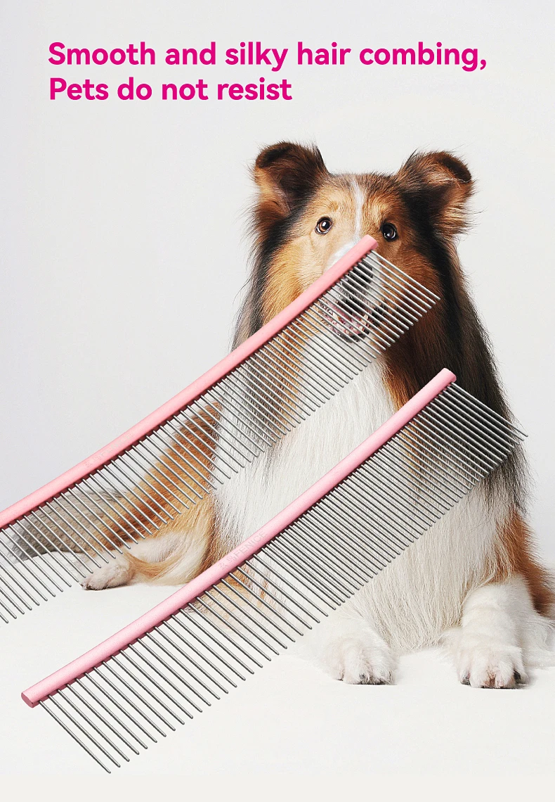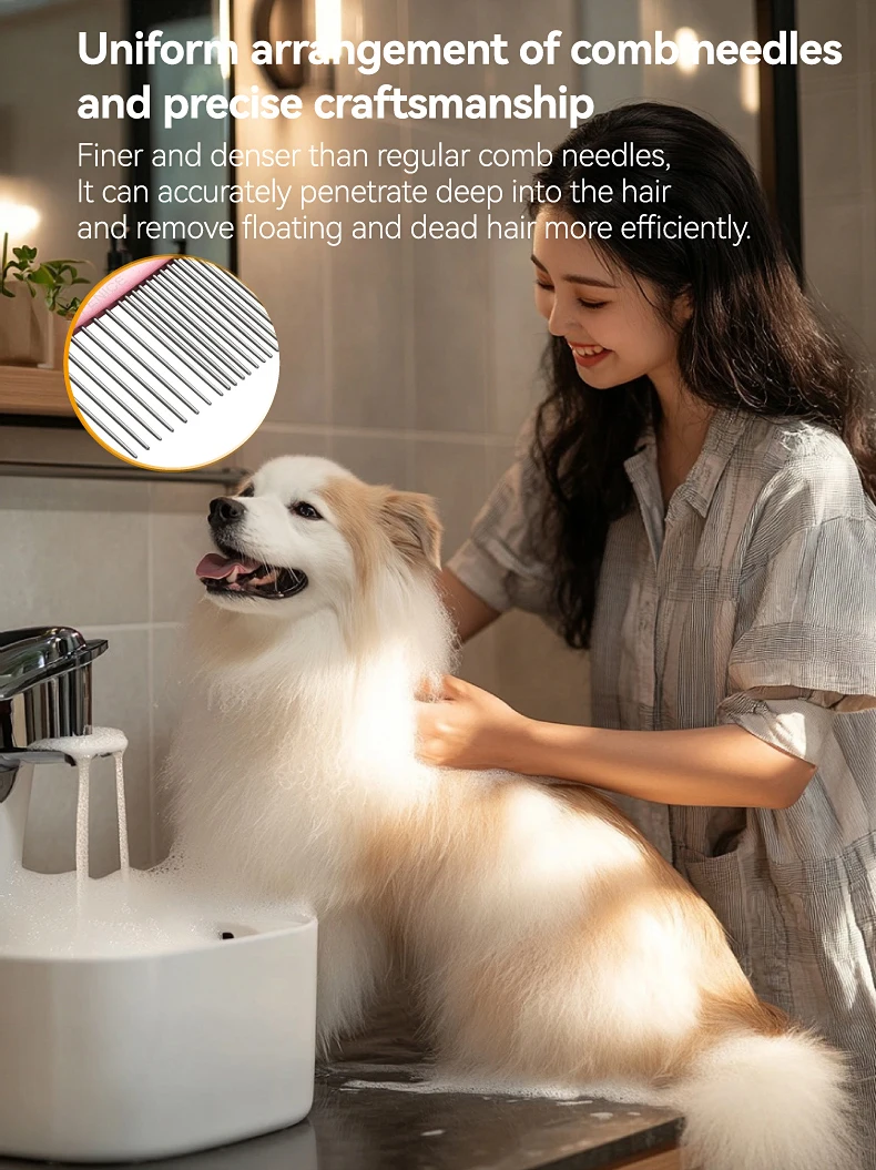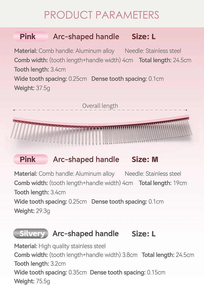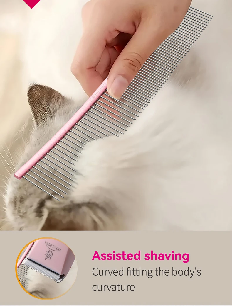 Peine de aseo curvo para mascotas Fenice, cepillo de acero inoxidable en forma de arco con dientes densos y esparsos para perros y gatos, suministros de aseo para mascotas