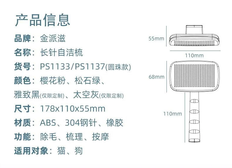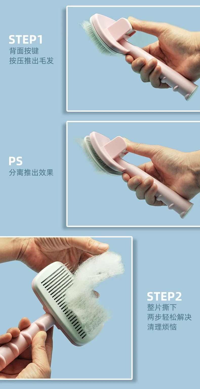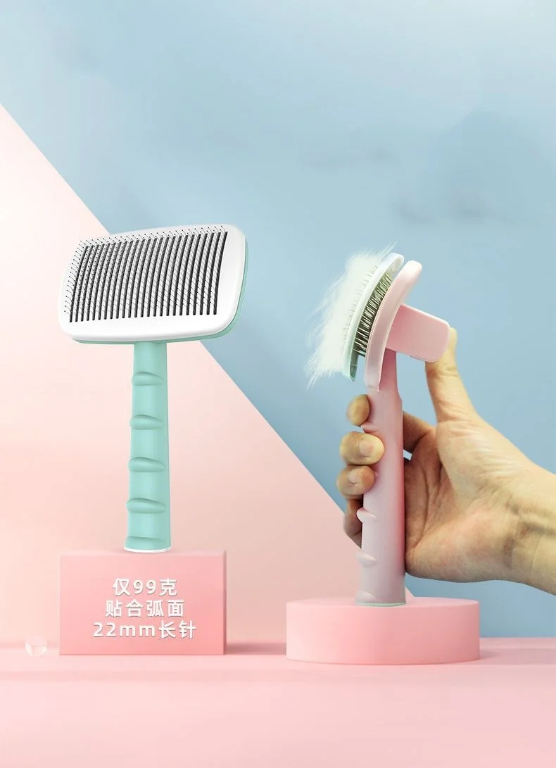 Peine de autolimpieza para mascotas, cepillo rebanador con botón de liberación, cepillo para el cuidado del perro, peine para gatos, herramienta de masaje para mascotas, piel suelta