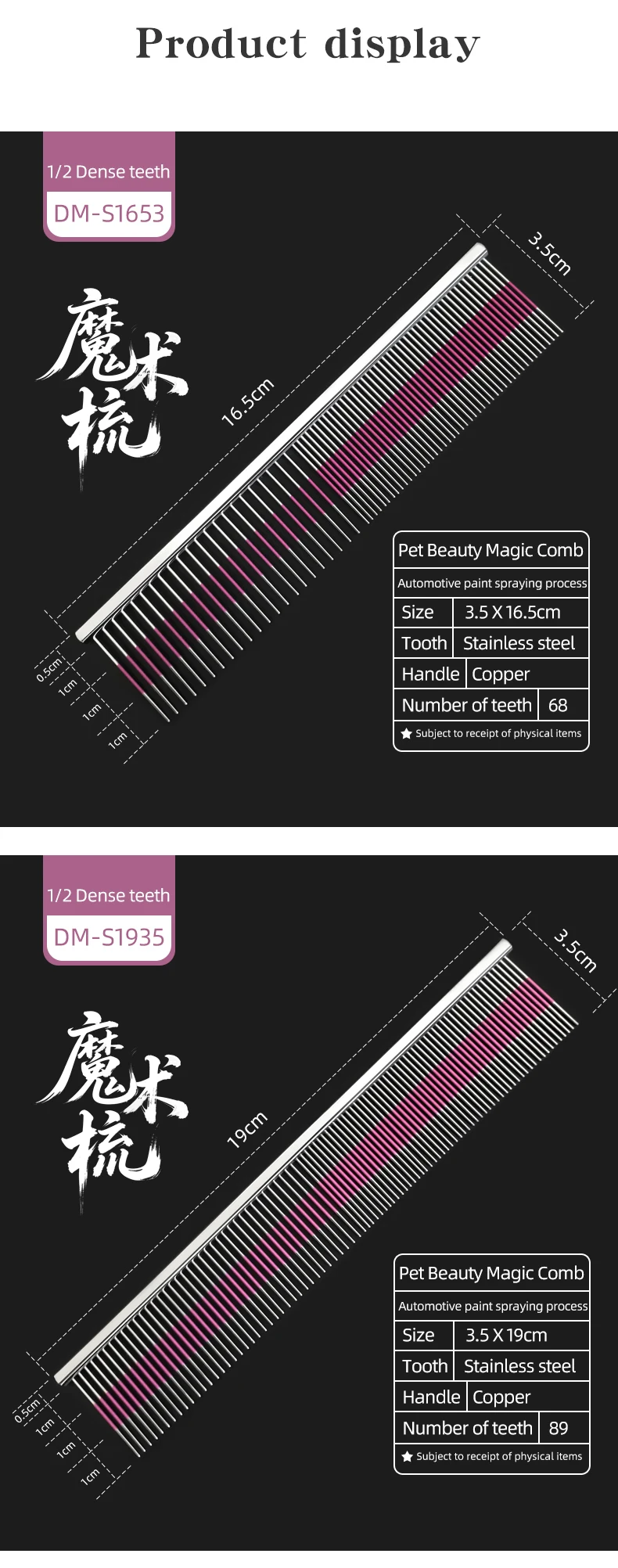 Peine para el cuidado de mascotas, proceso de pintura automotriz, mango de cobre, peine a rayas moradas, peine para perros y gatos, 19cm/23cm, uso en tienda de mascotas, Teddy