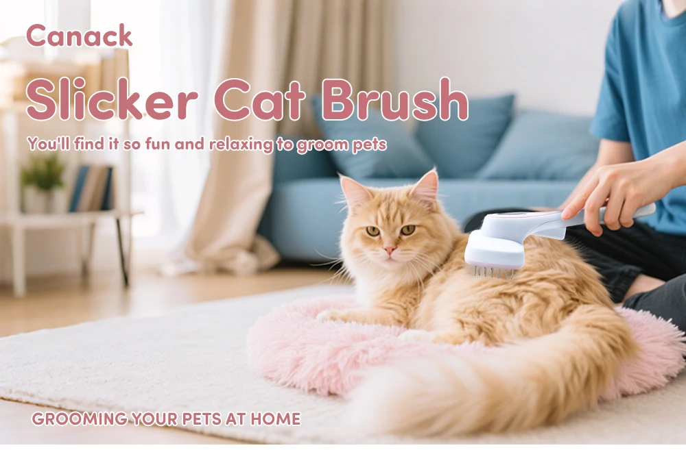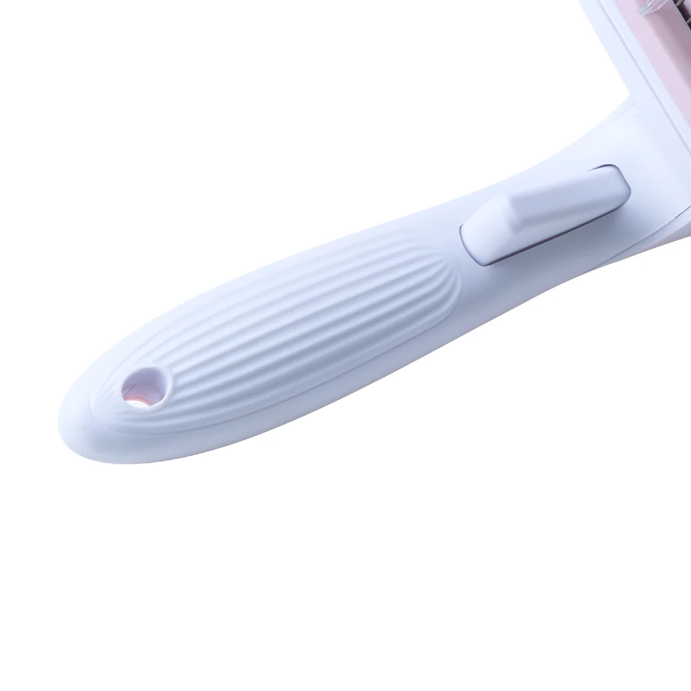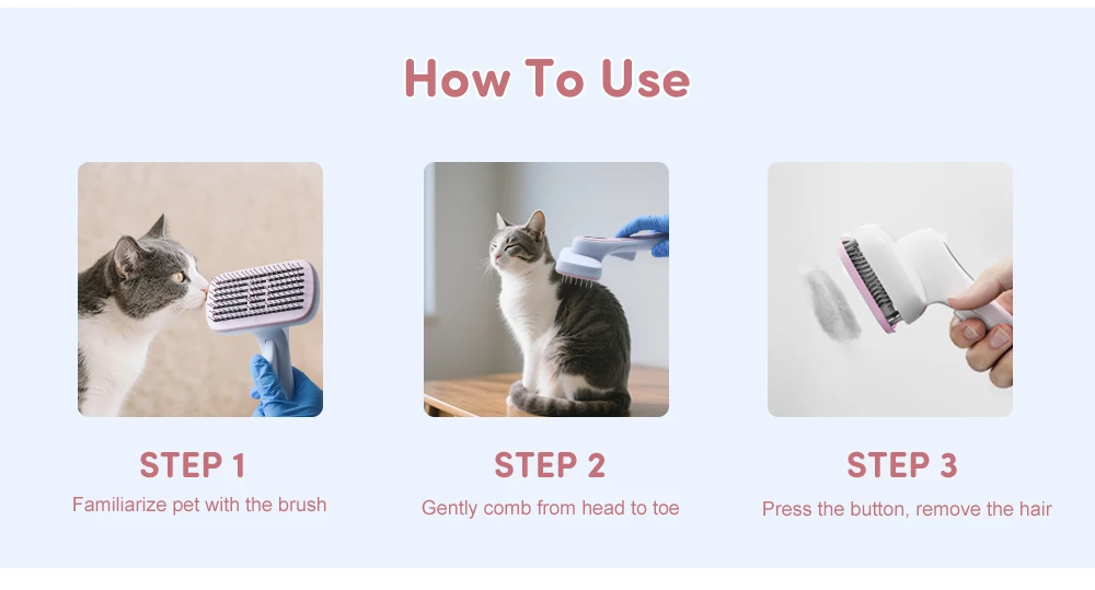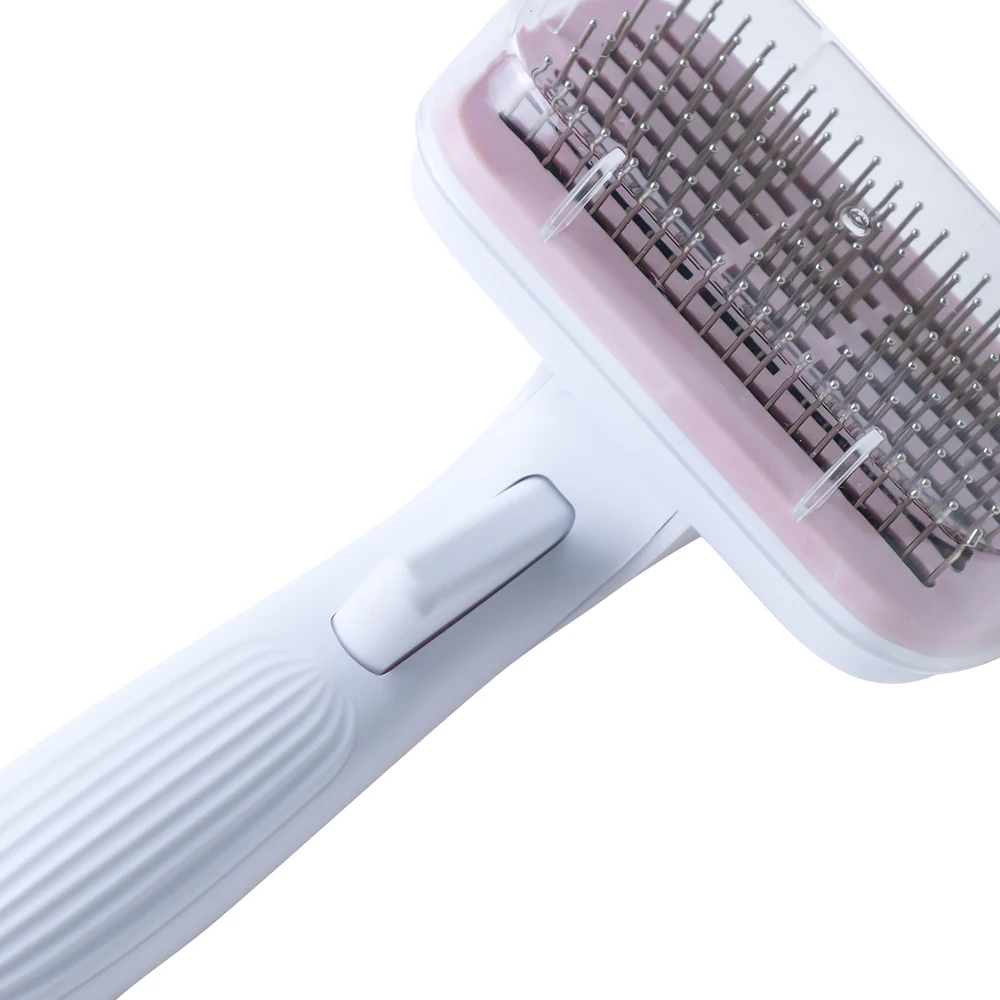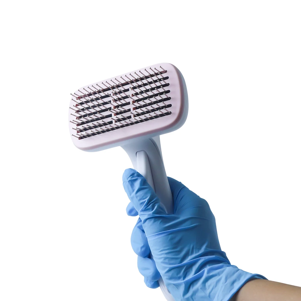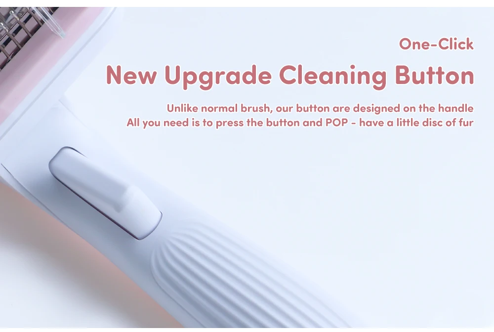 Después de cepillar a tu mascota, simplemente haz clic en el botón.El obturador saldrá, separando el pelo cepillado de la aguja de metal y luego limpiará el pelo.El botón del cepillo para pelar gatos en el mango ahorra tiempo y energía al arreglar y limpiar.