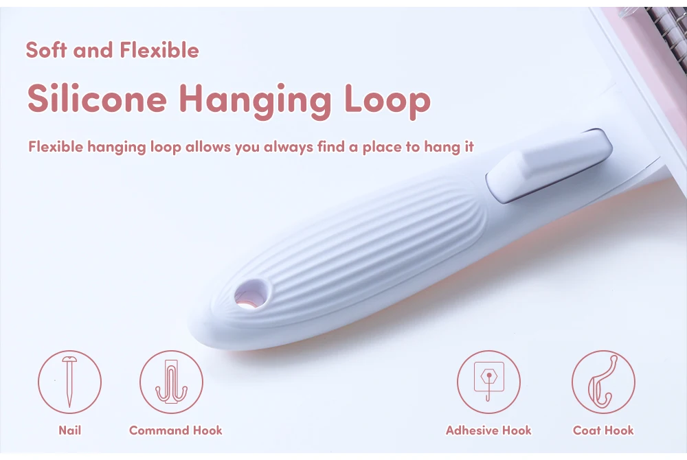 Los pasadores mentales del cepillo para gatos con botón de liberación tienen puntas redondas de goma en los extremos.Como cepillo para pelar gatos, es perfecto para desprenderse y masajear a sus mascotas sin rayar la piel de su mascota, incluso la piel sensible.Después de su uso, puede colgarlo con la correa de silicona para proteger la aguja doblada.