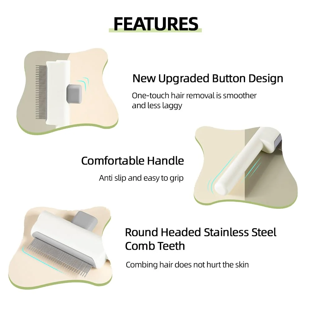 【Fácil de operar y limpiar】Simplemente presione el botón para eliminar fácilmente el pelo del cepillo para gatos.Para una limpieza cómoda, simplemente retire el pelo acumulado del cepillo y enjuáguelo con agua corriente.