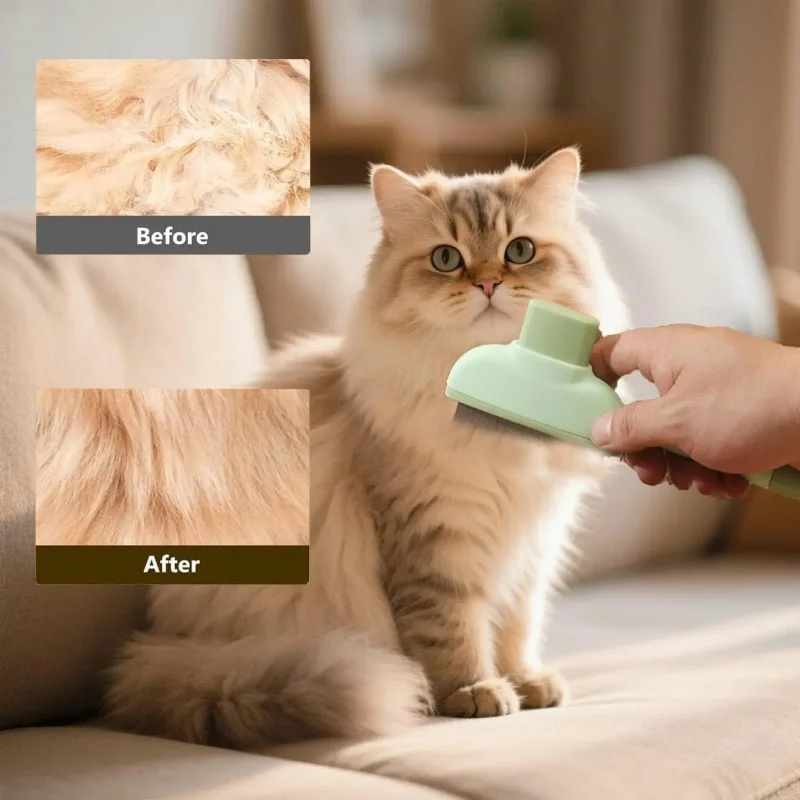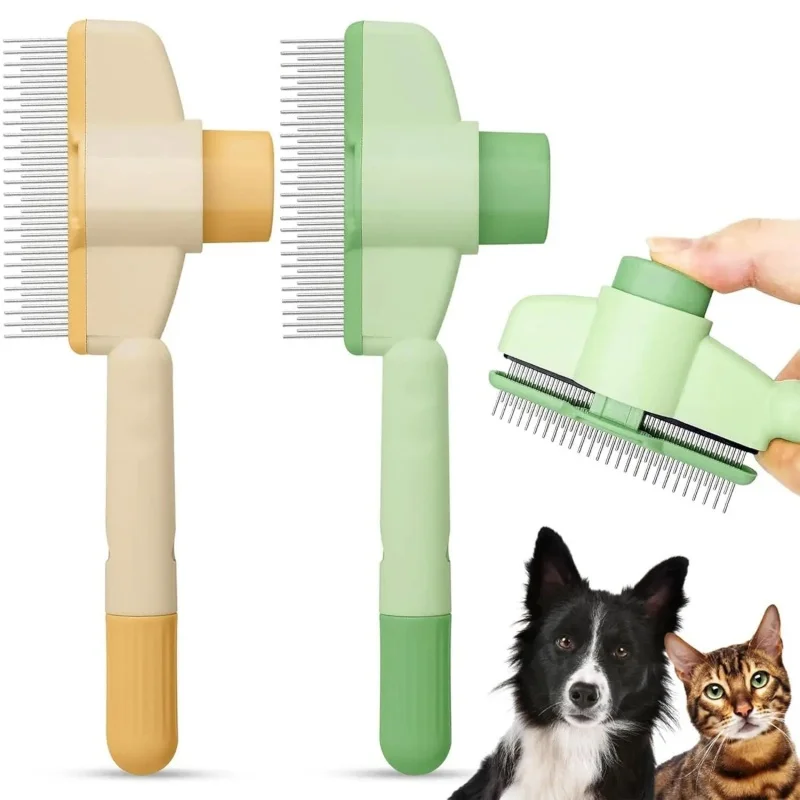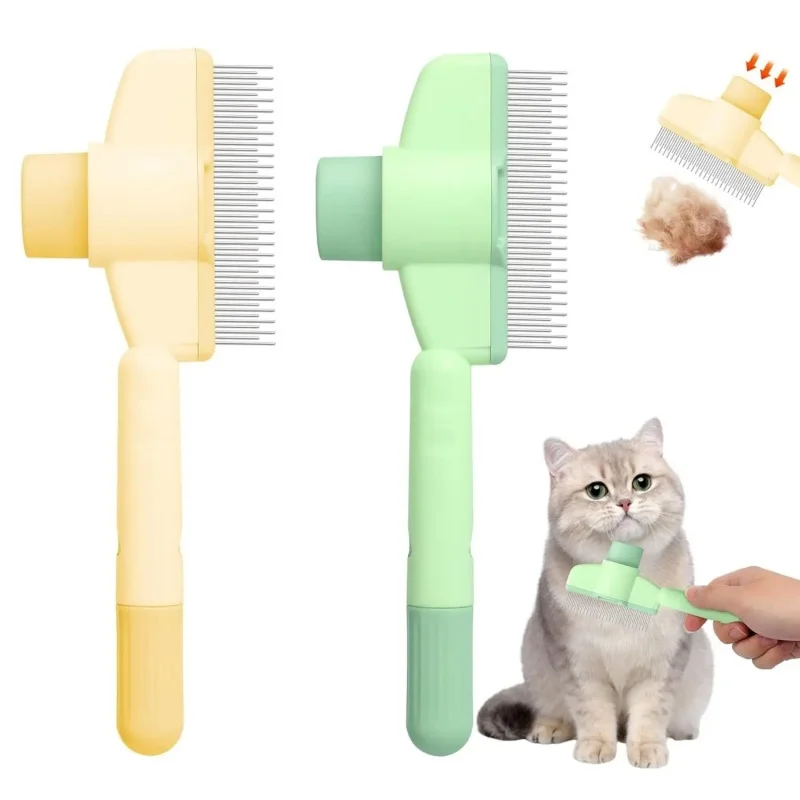 Peine para depilación de mascotas, peine para pulgas, nuevos peines de eliminación de mascotas autolimpiantes con un solo clic para pelo corto y largo, peine para perros y gatos para masilla de aseo