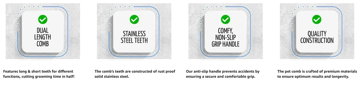 MANGO ANTIDESLIZANTE: No tiene que preocuparse por ser demasiado cauteloso al usar nuestros peines para mascotas para gatos, perros y otros animales pequeños. Se ha mejorado con un mango antideslizante para ayudar a evitar accidentes.