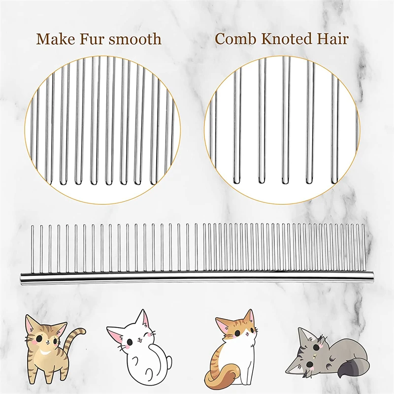 El peine de aseo para mascotas está hecho de material metálico de acero inoxidable de alta calidad. Es fuerte y resistente a la corrosión. Es duradero, no se oxida cuando se usa y puede evitar la electricidad estática, fácil de transportar.