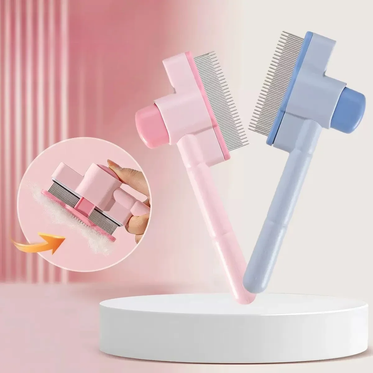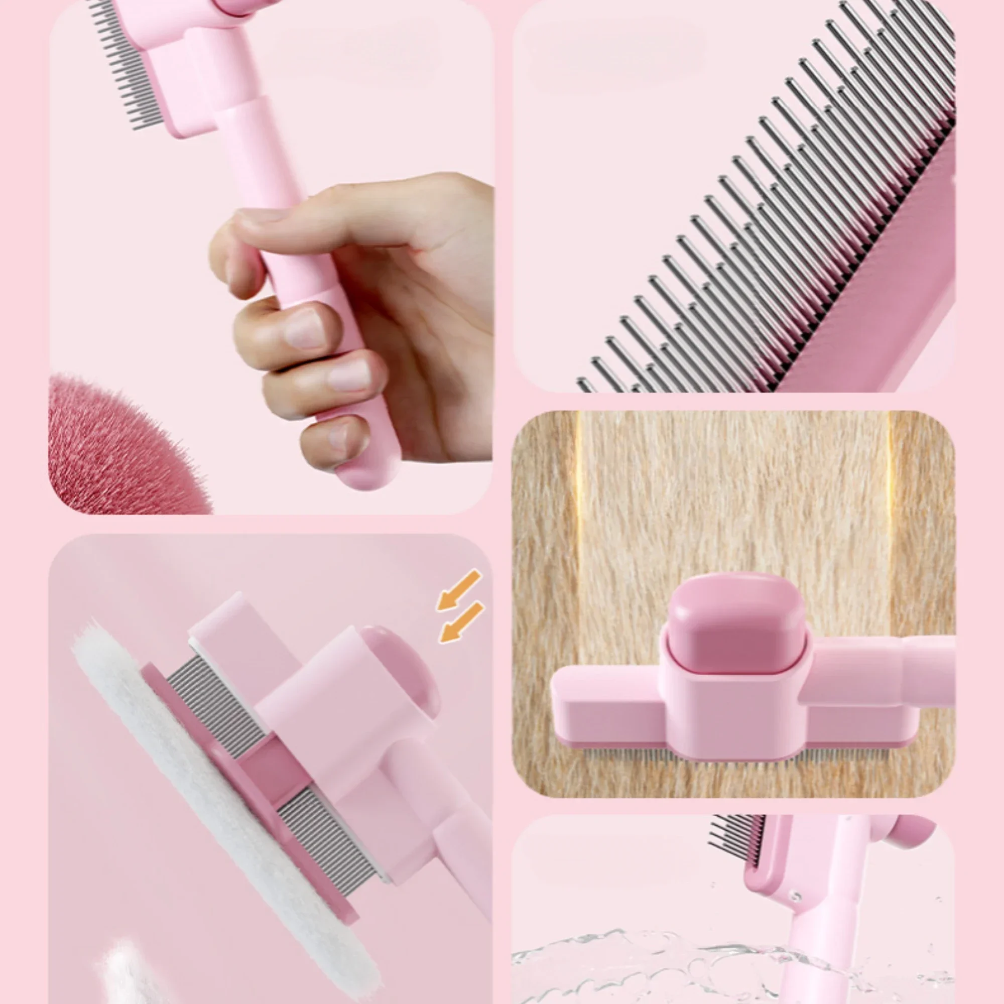 Peine para el pelo de gato, removedor de pelo para mascotas, cepillo para perros con un botón, cepillo autolimpiante para gatos, peines de masaje para cepillos de aseo para perros, productos para mascotas