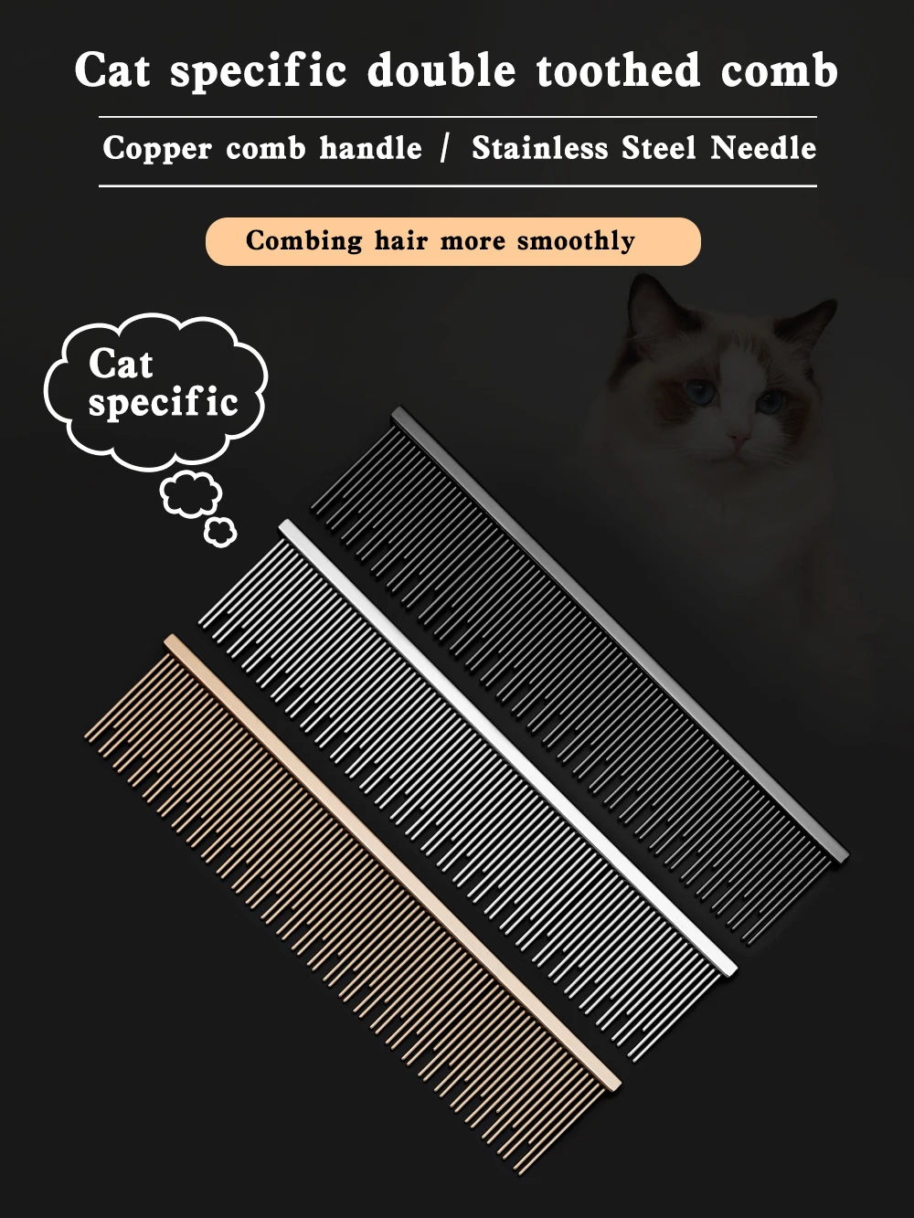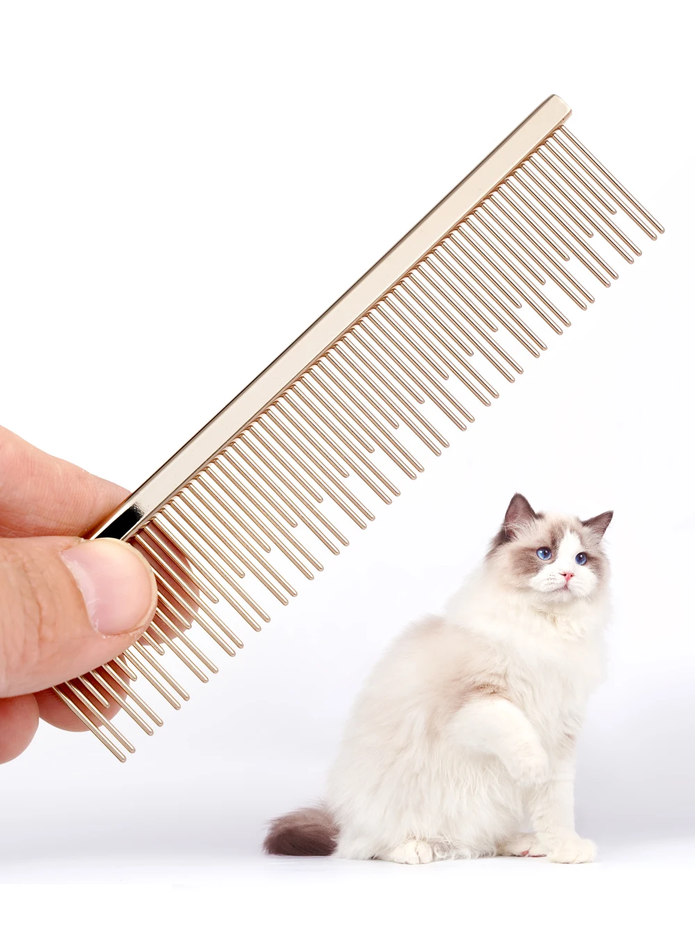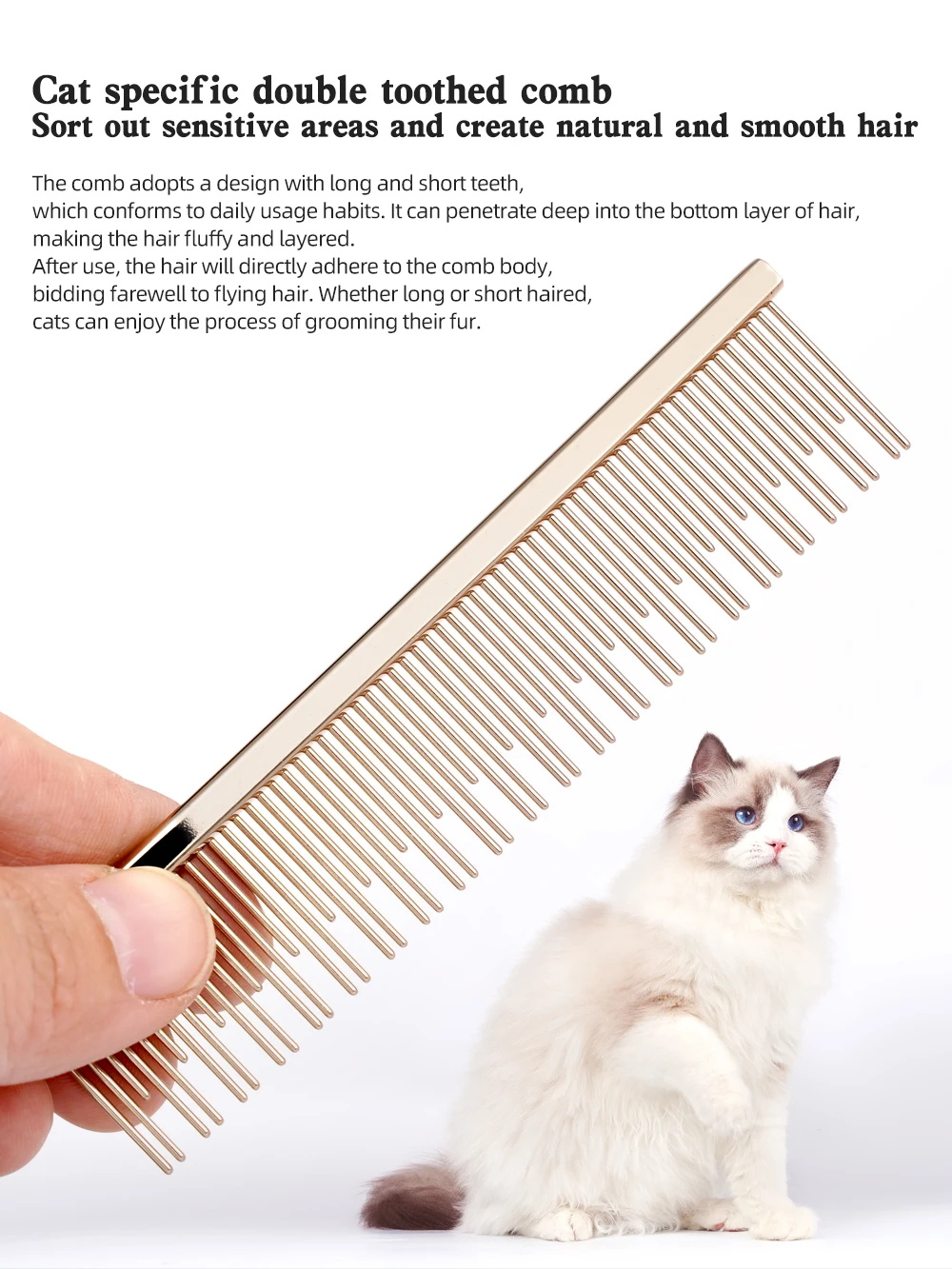Peine específico para gatos Diseño de dientes largos y cortos Ragdoll Cat Blue Cat Mangillo de peine de cobre Cabello peinado profundo Buena elasticidad
