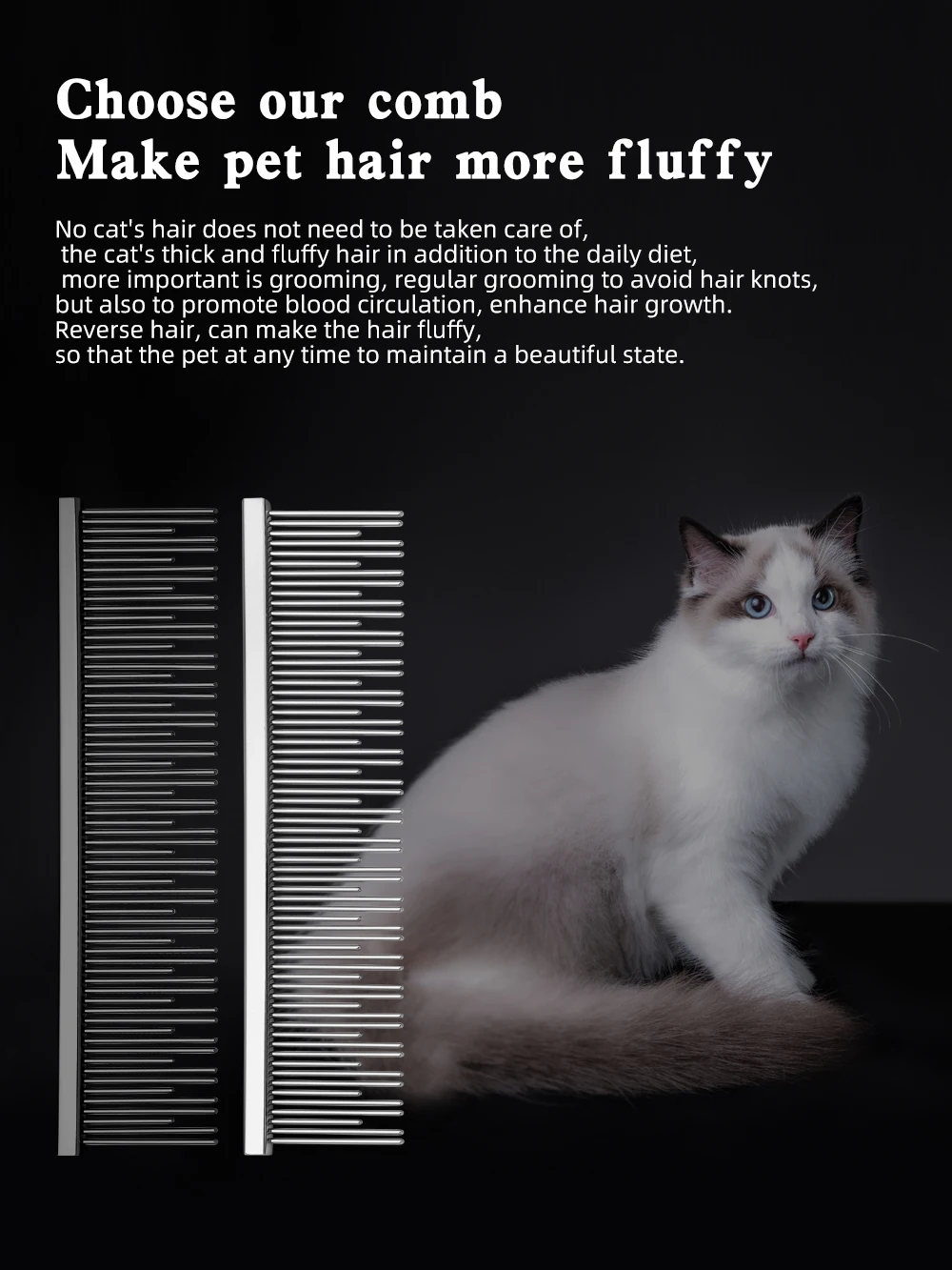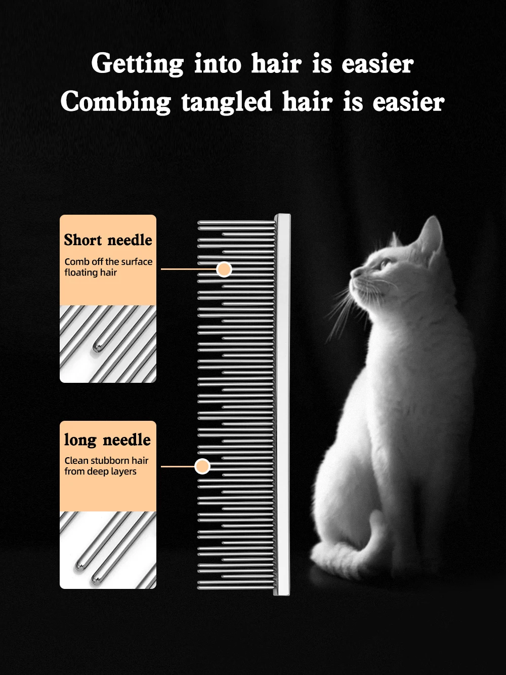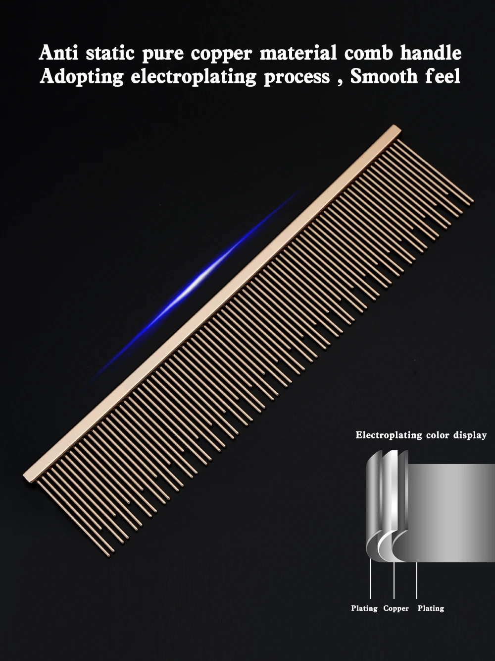 Peine específico para gatos Diseño de dientes largos y cortos Ragdoll Cat Blue Cat Mangillo de peine de cobre Cabello peinado profundo Buena elasticidad