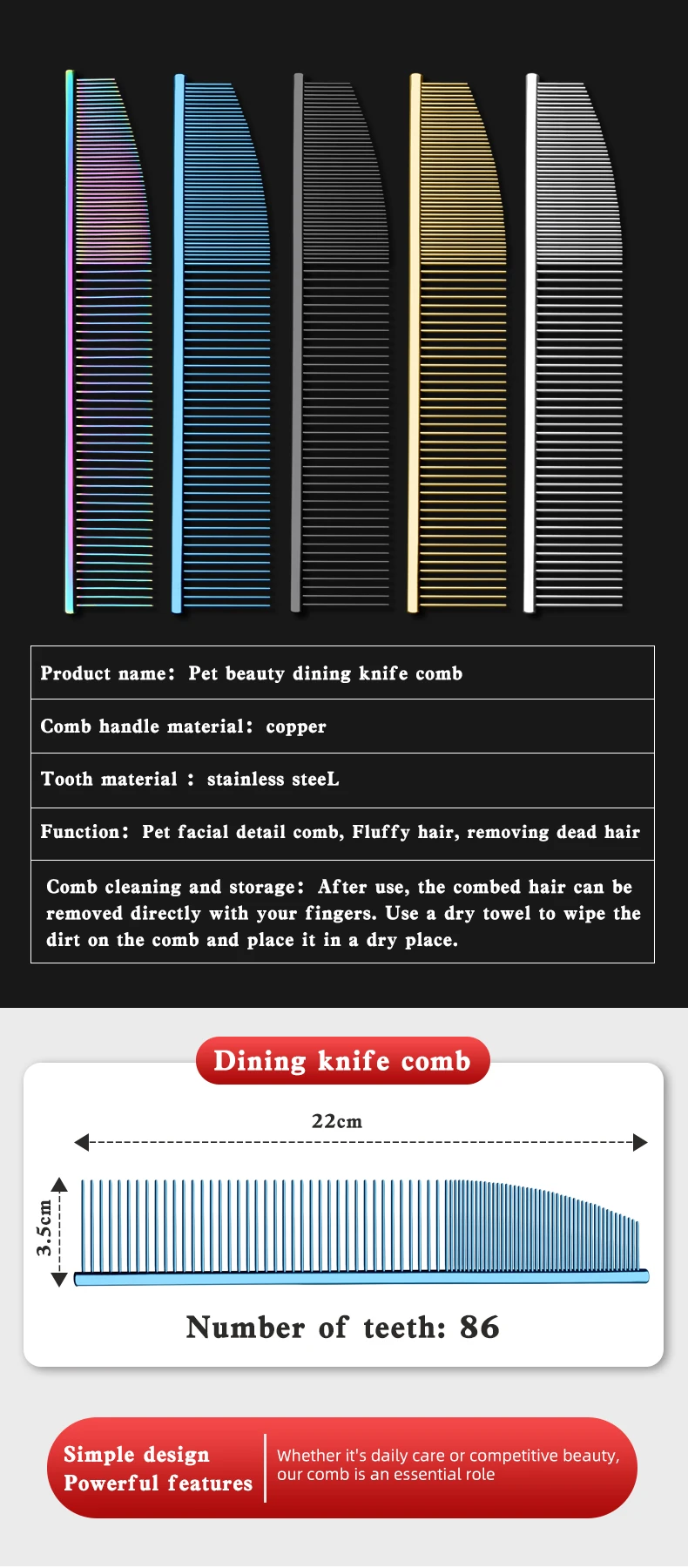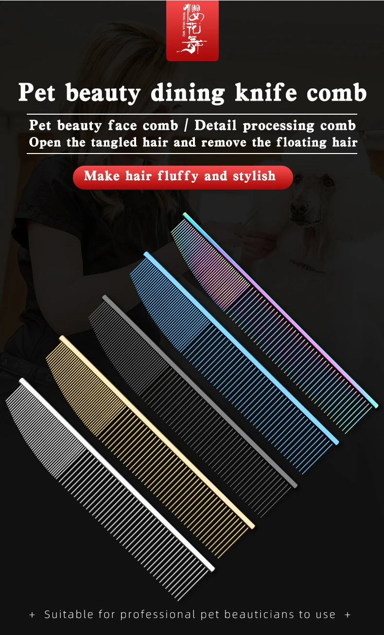 Peine facial con cuchillo de comedor para mascotas, peine de procesamiento de detalles, abre el pelo enredado y elimina el cabello flotante, nuevo estilo