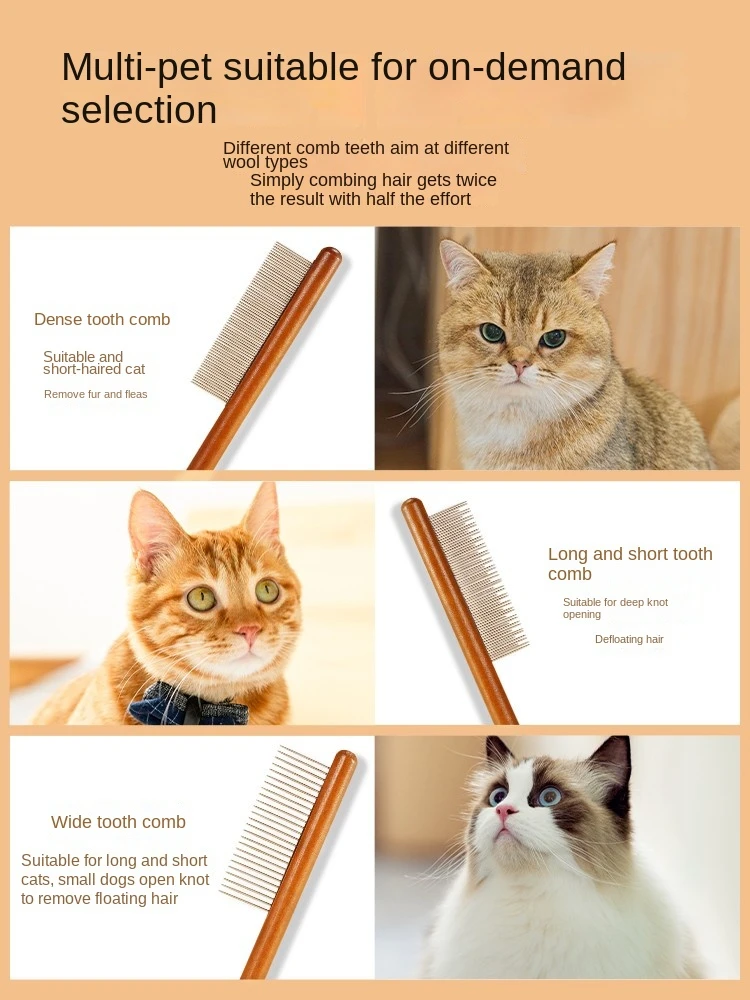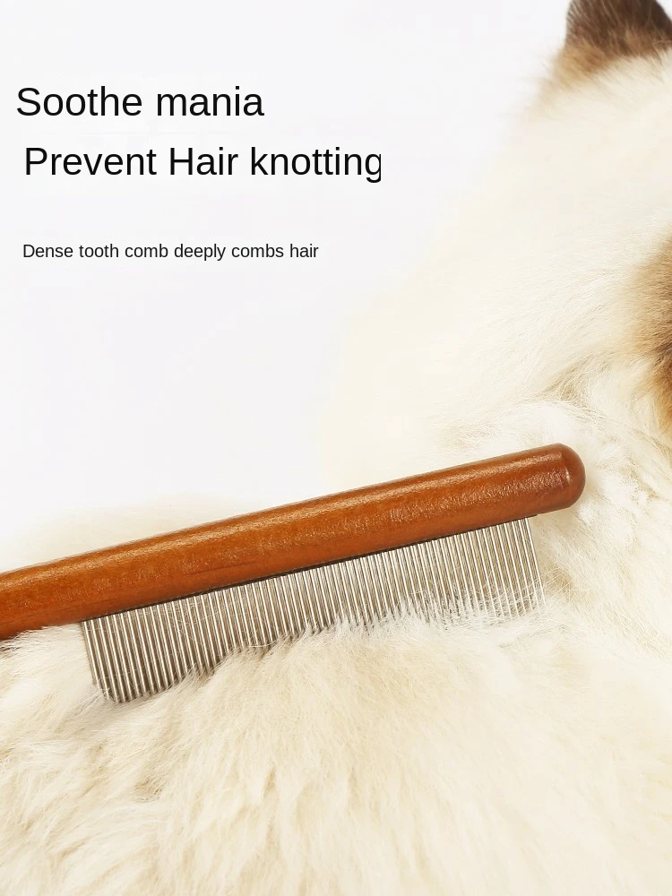 Peine para gatos, accesorios para gatos, removedor de pelo de acero inoxidable para mascotas, mango de madera, peine de pelo sólido para gatos, herramienta de limpieza con cepillo para perros y cuidado de mascotas