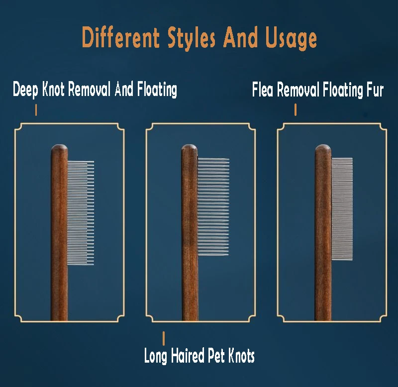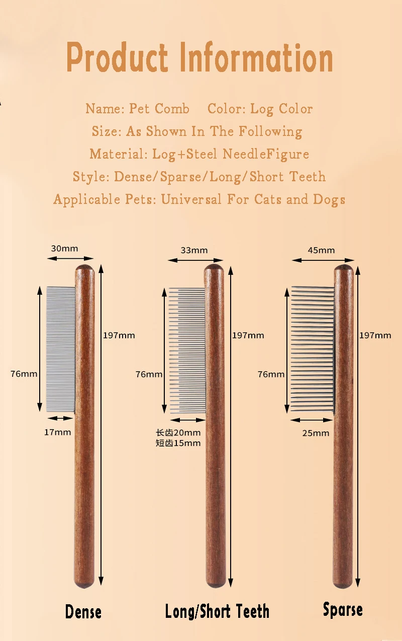 Peine de madera maciza para limpieza de mascotas, peine para pulgas, herramienta de aseo para gatos, cepillo removedor de pelo de acero inoxidable para perros, suministros para mascotas