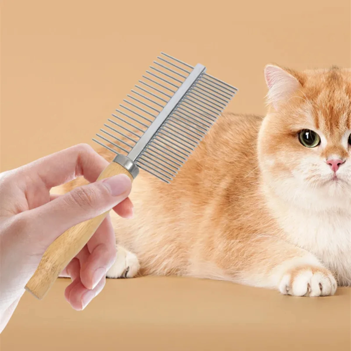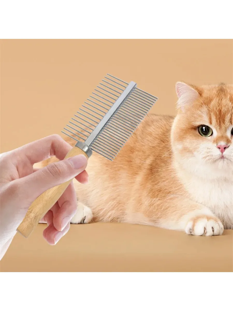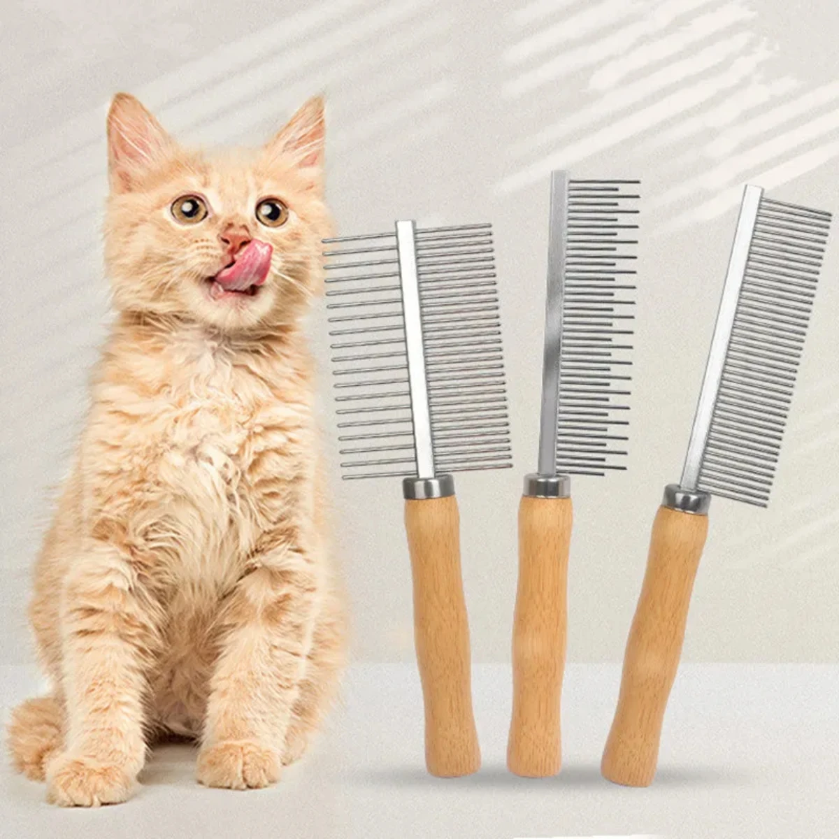 Peine para gatos, cepillo para gatos de acero inoxidable, cepillo para pelo de perro, mango de madera, removedor de pelo para mascotas, peine para gatos, herramientas de limpieza para el cuidado de mascotas, accesorios