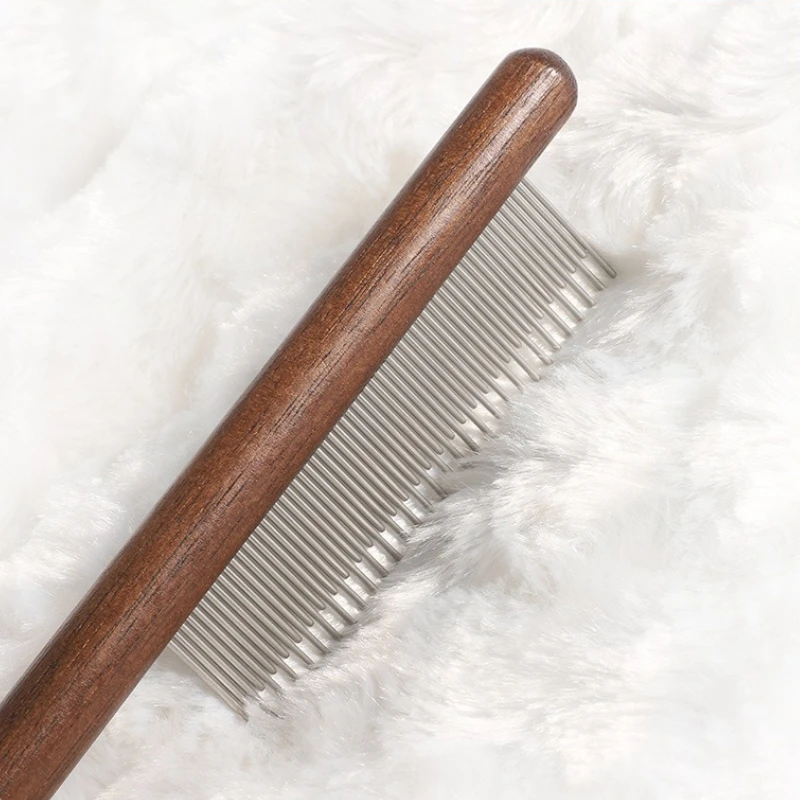 ¡Aprovecha la temporada de muda y los nudos rebeldes con nuestro peine para mascotas de madera de haya de primera calidad!Diseñado para una experiencia de cuidado sin dolor, elimina eficazmente el pelo suelto y desenreda las esteras sin irritar la piel sensible de su mascota.