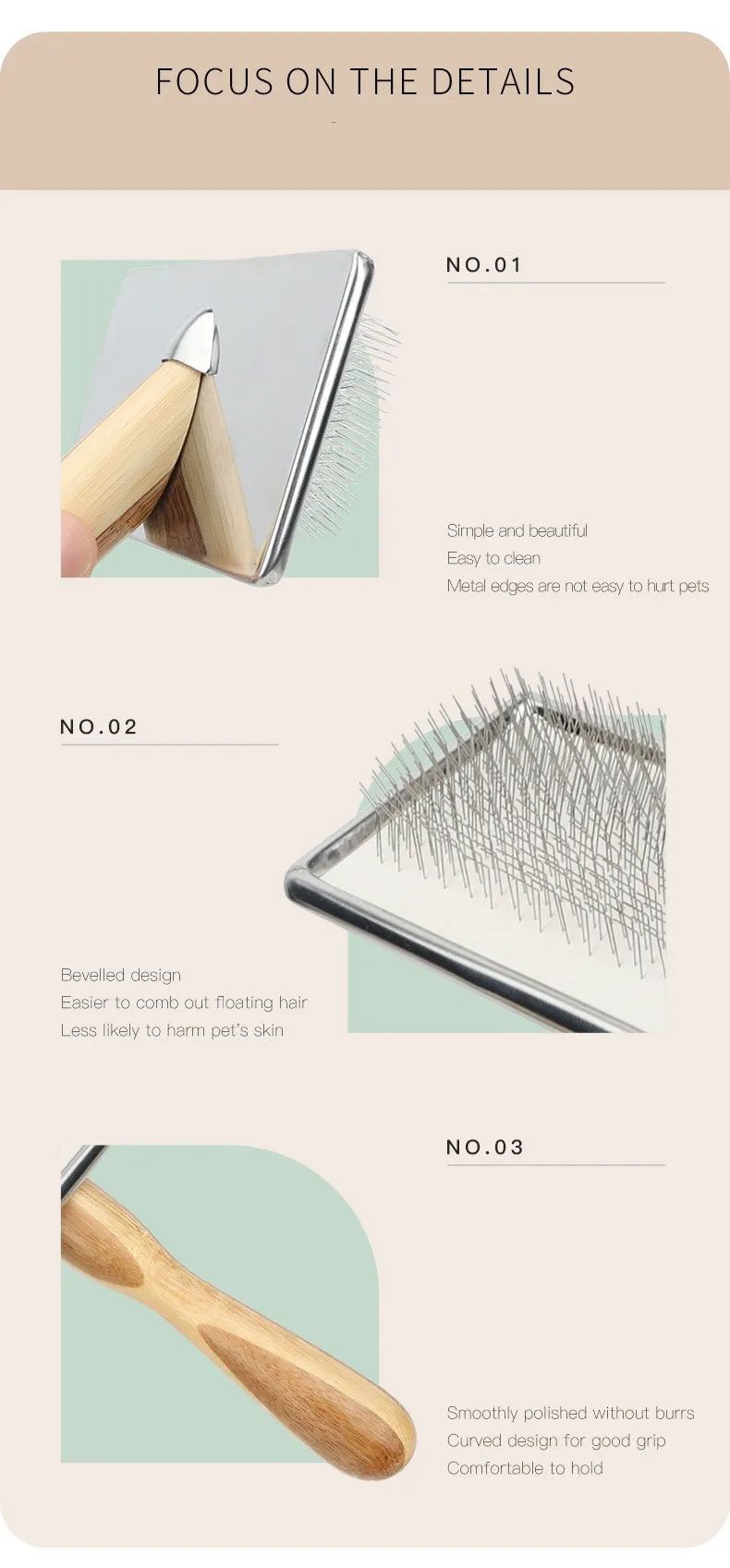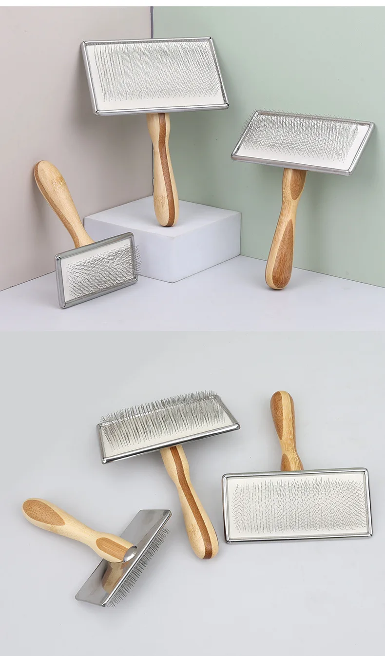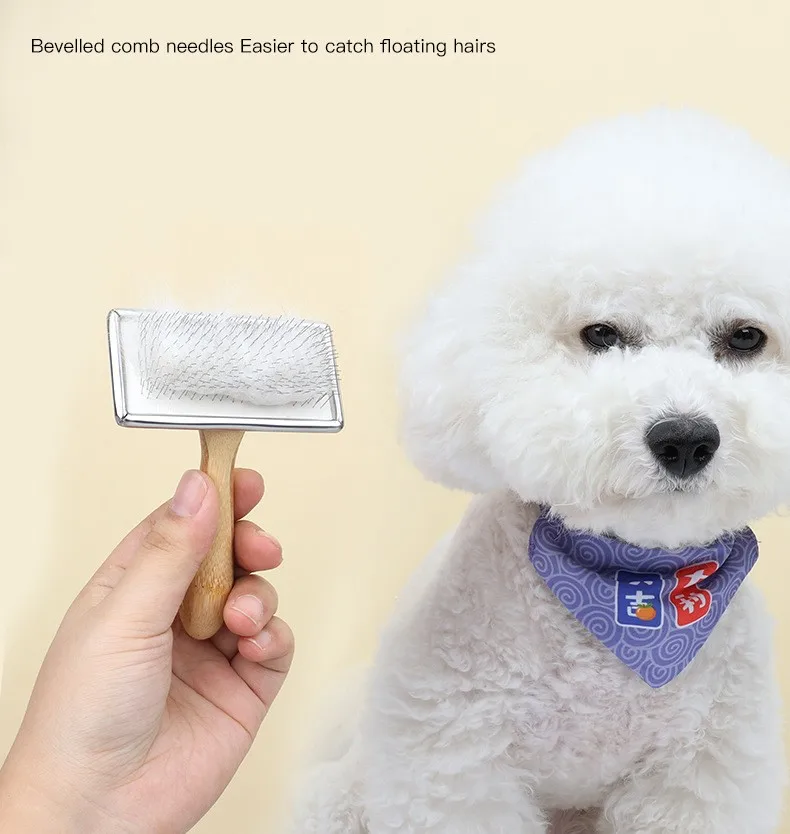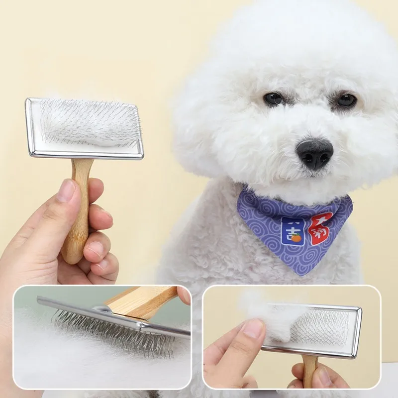 Peine de madera para perros, cepillo removedor de pelo de mascotas, peines de acero inoxidable para pelo de gato, cepillo de masaje limpio, suministros para mascotas