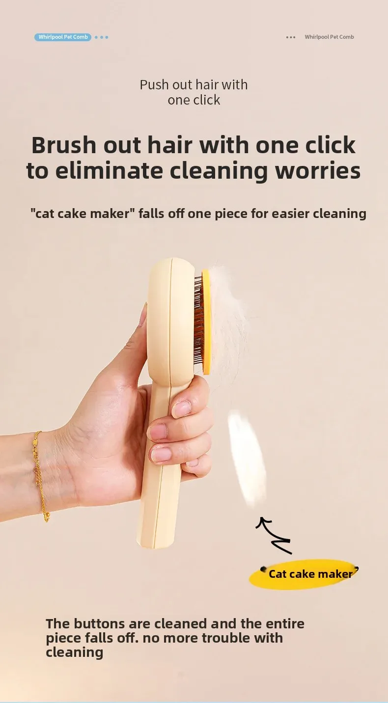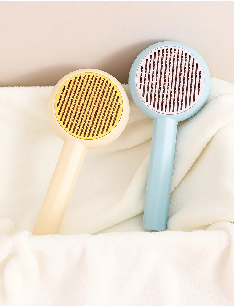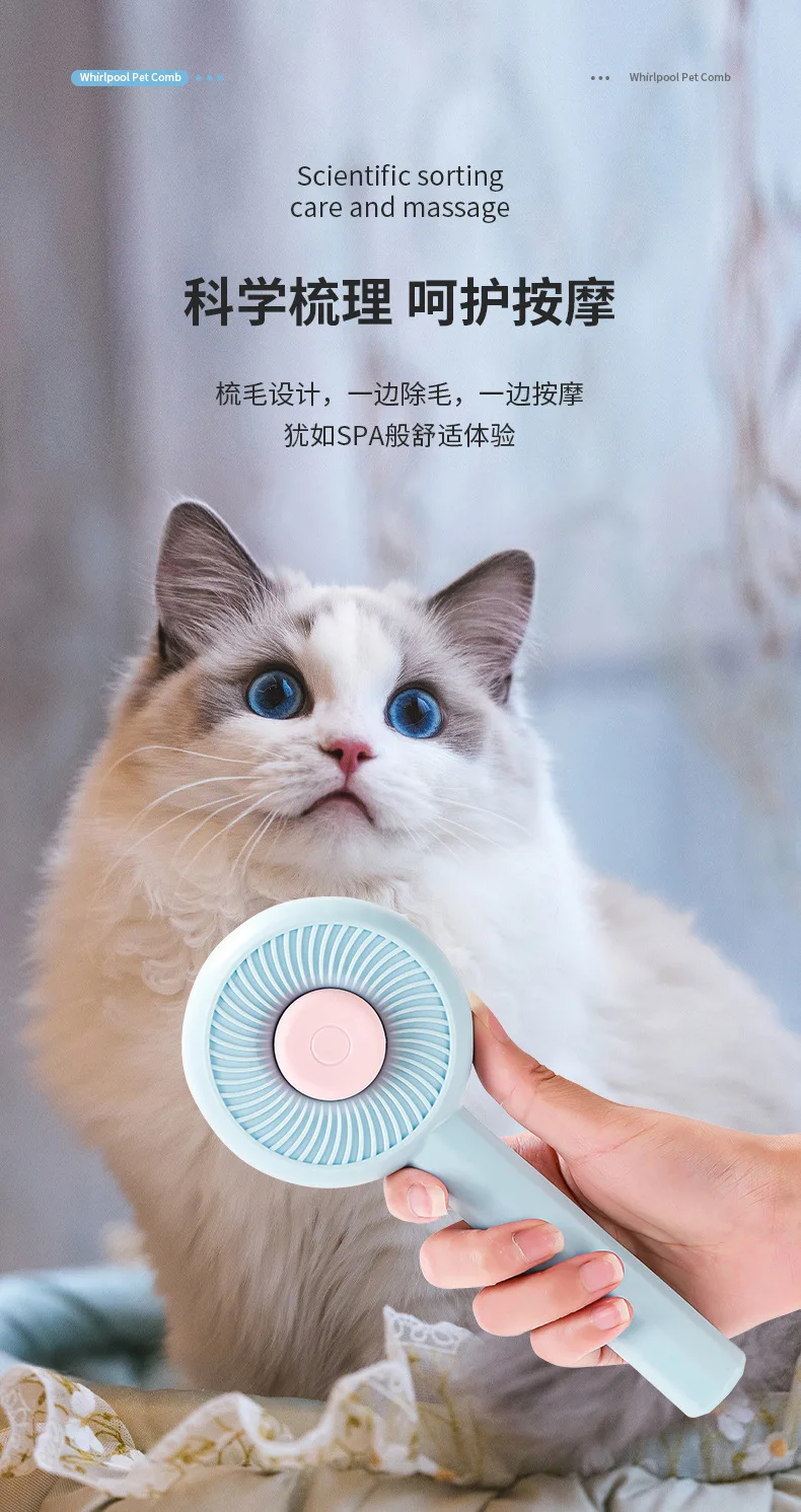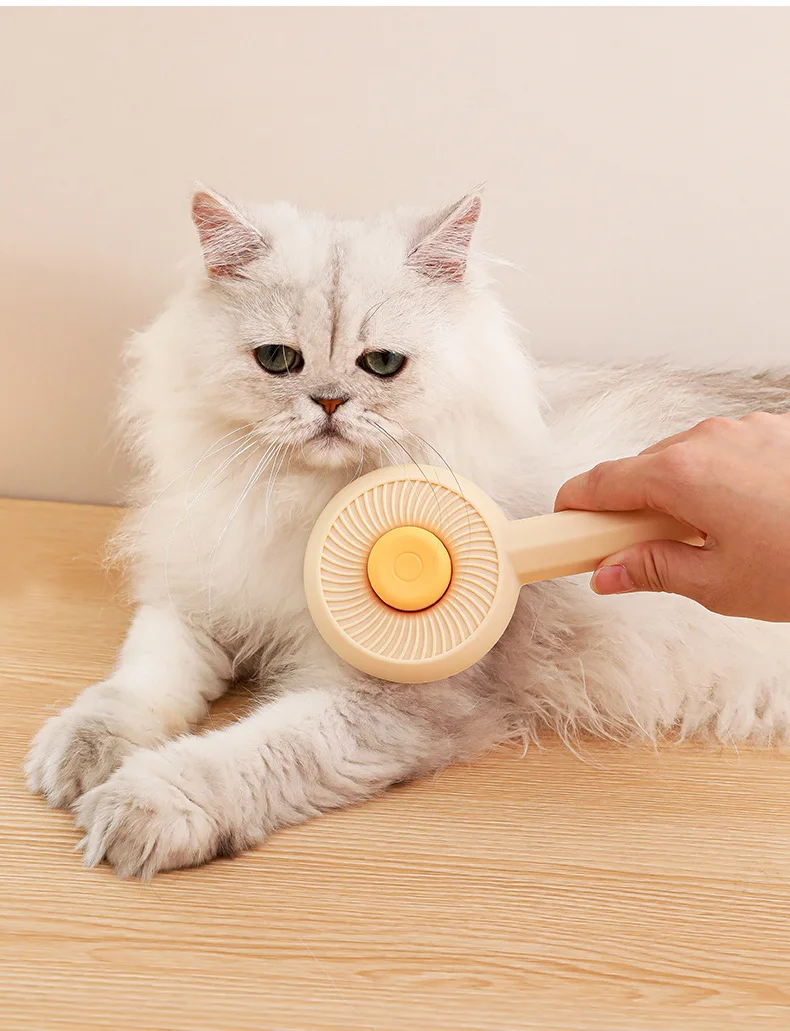 Peine de masaje para Gato, aguja de limpieza de acero inoxidable, cepillo de depilación para perros, función de autolimpieza para eliminar el vello flotante