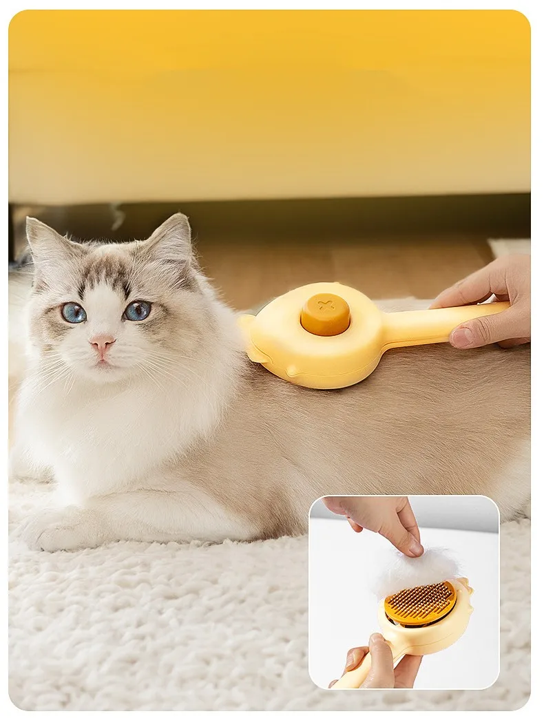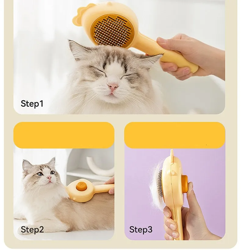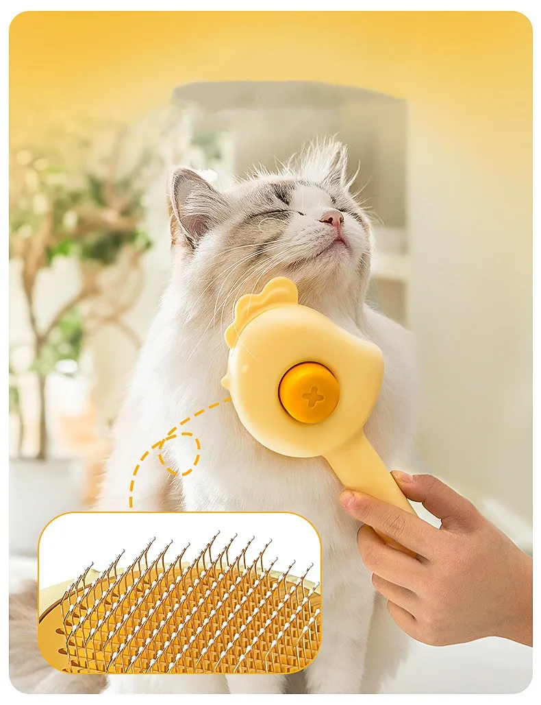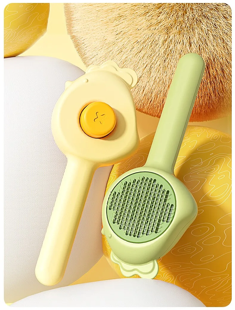 Peine de masaje para perros y gatos, cepillo de aseo autolimpiante, peines removedor de pelo de mascotas, peines de un botón para limpieza de pelo de gatos