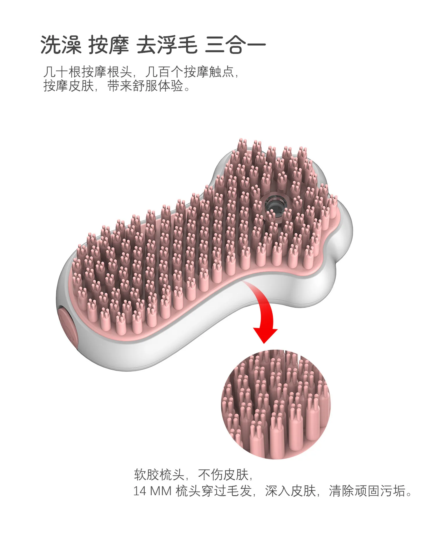 Peine de masaje con pulverizador para perros y gatos, para eliminar el vello flotante, no daña la piel, baño, afeitadora 2 en 1, suministros de aseo para mascotas