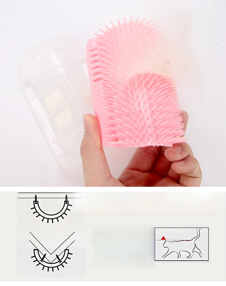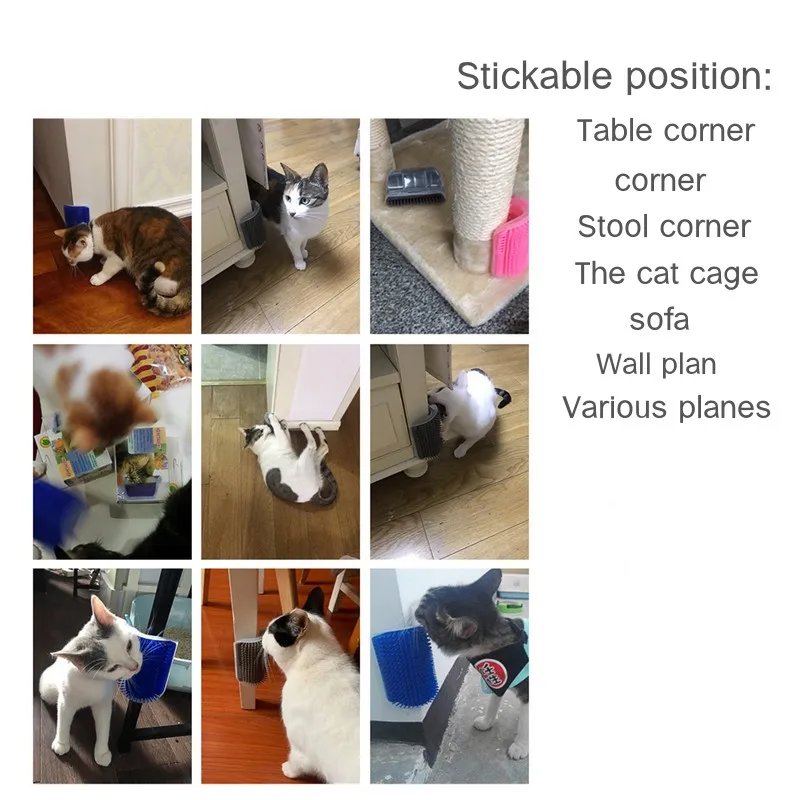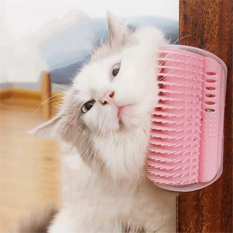 Self toelettador para gatos con hierba gatera, peine rascador de esquina de pared, cepillo de masaje suave para aseo, herramienta masajeadora de arañazos para gatitos y cachorros