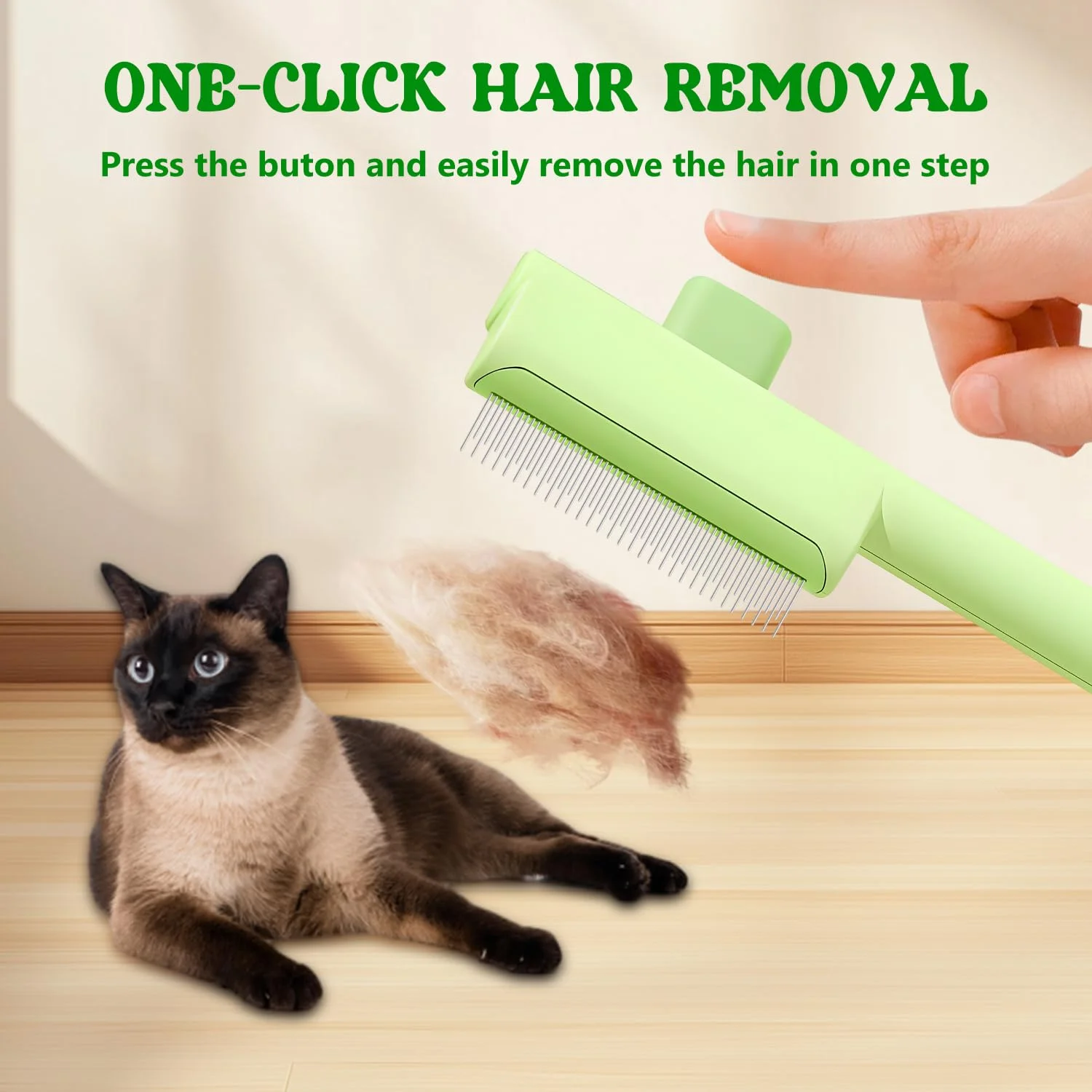 Autolimpieza con un clic: cuando necesite limpiar el pelo peludo de su peine para pulgas, simplemente presione el botón para limpiar el peine de su mascota y es fácil de operar con una mano.Los peines para piojos son suaves sin bordes afilados, diseño de seguridad que no lastima a sus perros ni gatos.